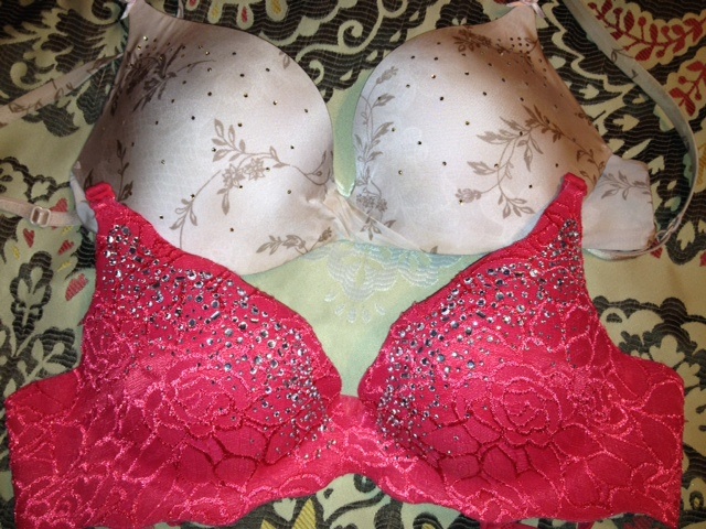 Ну вот два в стразах. Красному года три. Стирала несколько раз, естественно в мешочке со всеми предосторожностми. Бежевый из серии повседневок у меня. То есть стираю я его часто в сравнении с другими. Ничего не отваливается , если как миямия пишет что после стирки все отпали, надо идти в магаз и устраивать "ядерный взрыв"! Потому что это брак! Извините отдать за лифон от 75-145+$$ и чтобы это приклеивать после стирки? Вы должно быть шутите!