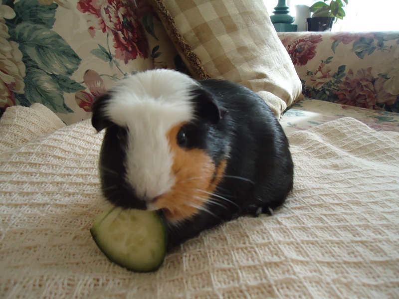 Свежевымытый Рики ест огурчик