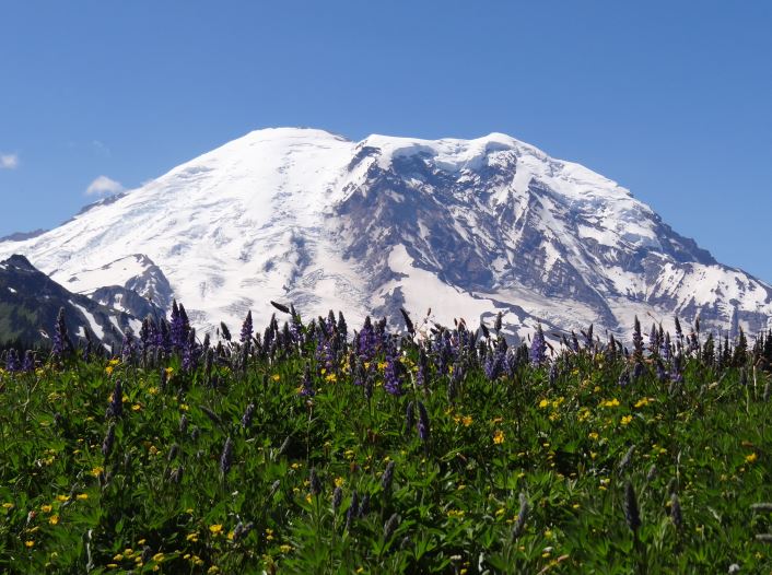 А это Spirit Lake. Оно вышло из берегов во время извержения и смыло обгоревшие деревья в воду. Вот так эти остовы и дрейфуют с одного берега на другой, в соответствии с направлением ветра. Сама St.Helen красуется за ним. По мне - так очень красиво....