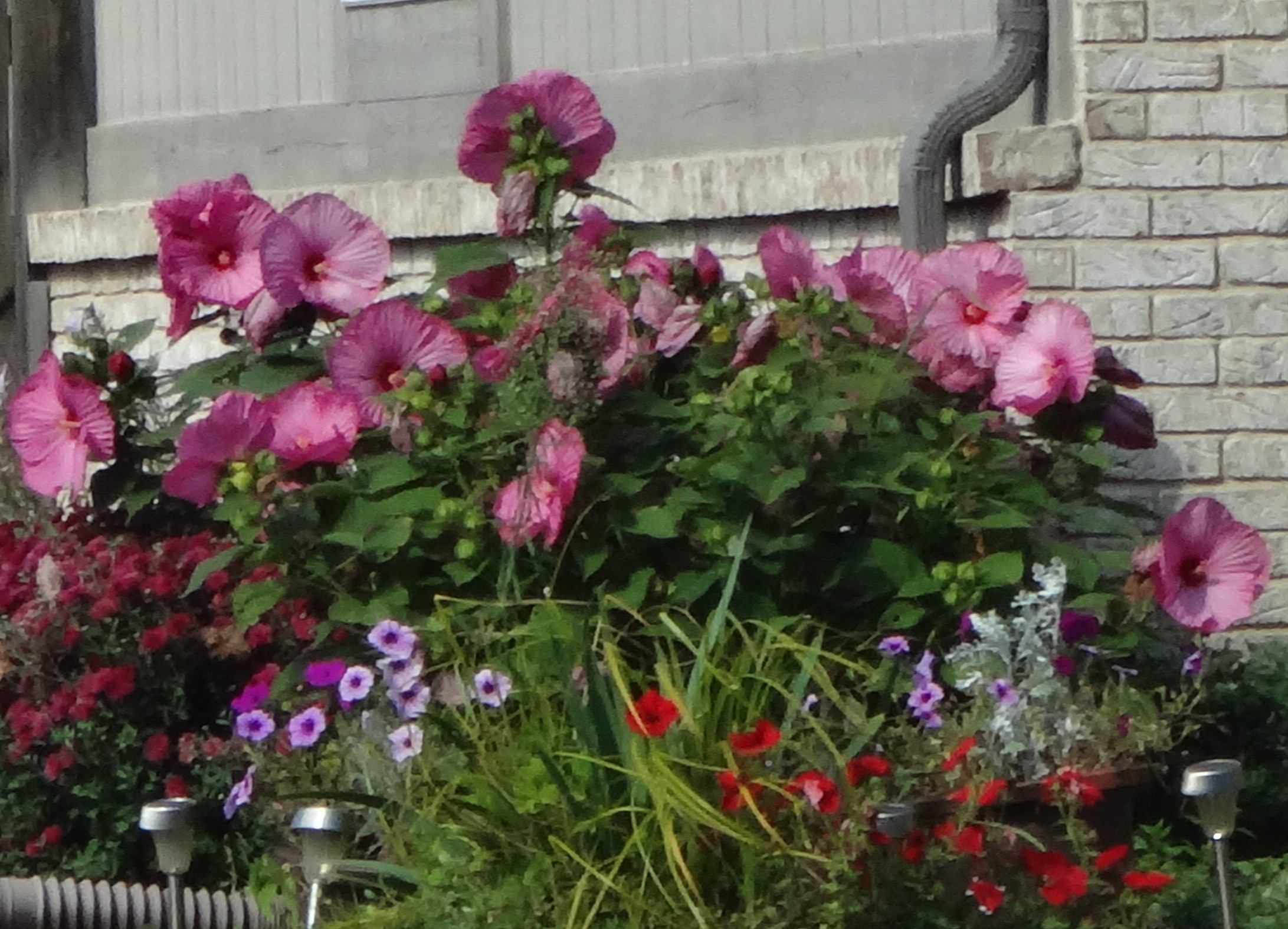 MiaMia писал(а): :a_hello очень нравится растение. не дельфиниум...огромные цветки вот сегодня сфотала.бывают белые,светлорозовые и голубые они еще бывают выше..и много цветков на палке  Мия, если у него ветки полностью отмирают на зиму, а весной снова вырастают из-под земли, то это растение - hardy hibiscus. Rose of Sharon (althea) - это другое, это кустик, который только листья сбрасывает, а ветки у него одревесневшие. У Rose of Sharon цветы намного мельче, чем у гибискуса. Я вот только сегодня такой ярко-красный гибискус видела, цветы размером сантиметров 30 в диаметре, не меньше