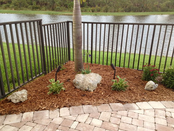 Учительница писал(а): вот посмотри какие компактные у меня бегонии в этом оч. дождливом году. Я даже их подкармливала, + они растут в хорошо удобренной почве с розами, а все равно большими никак не становяцца, максимум 25 см, но постоянно в цвету. Правда они не желтые и не оранжевые , но смотряцца ярко и издалека и вблизи; что делать, все сразу в одном не бывает наверное Я уже тоже подумывала о бегониях как вариант, но мне они просто как цветы не нравятся, какие-то мрачные. В магазине опять покрутила-покрутила горшки с ними и решила, что нет. Заказала на пробу семена карликовой календулы с пушистыми цветами, посмотрю подойдет или нет. Так теперь у меня другая задача  - найти цветок под 4-5 футов, чтоб был узкий и компактный, цвел ярко и чтоб нектарный для бабочек. Ну и хвалюсь последними трудами. По доброте душевной ребятками-мексиканцами притащенный мне болдер, обколотый ломиком, к сожалению излишне крупные куски пооткалывались в процессе, два самых крупных тож пошли в дело. Очень жалею, что не сделала фотку "до", показать какое безобразие раньше в углу было. Тата видела, если помнит  . Идея только еще не совсем завершена - за пальмой посею парочку высоких зиний, а с двух сторон от нее будут невысокие кусты ярко-оранжевого мексикан торч. За камнем, кстати, темно-синий агапантус Stormy cloud, раз кучу денег съэкономила на каннах, то решила все ж потратиться на него.