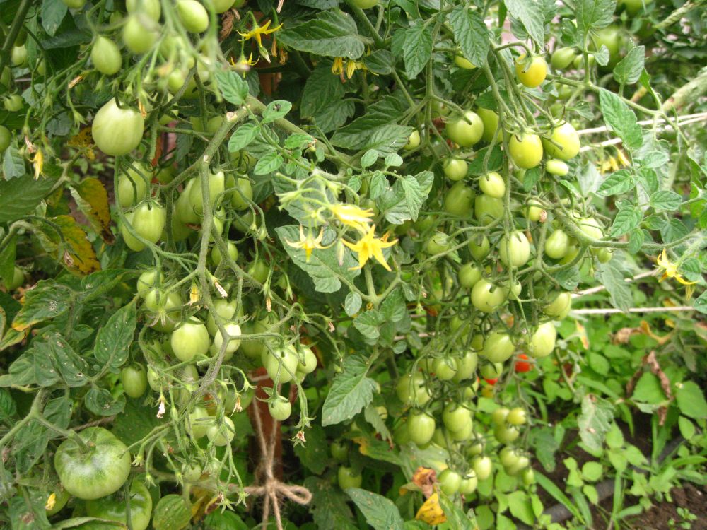 А вот помидорки - я в этом году их не пасынковала и выросло стоко, что я их окрестила виноградом...