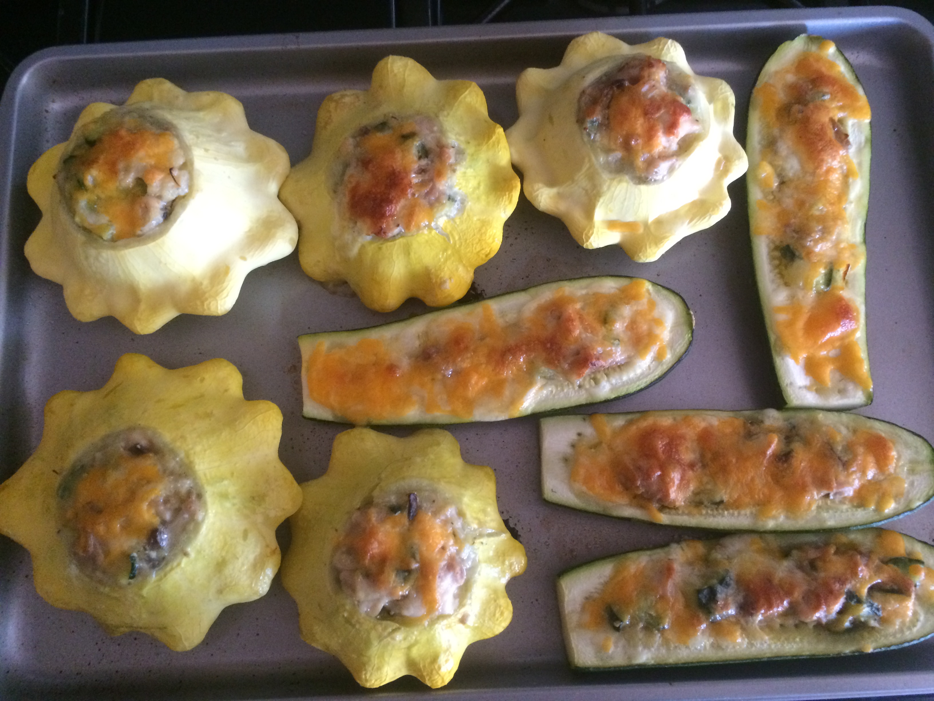 Гастрономические вести. Вот и закончилась 3х дневная яблочно-огуречная диета моего супруга. Выдержал. Не всхуднул, но выдержал. Не плакал. Огурцы так и не полюбил, но и к яблокам так же неумолим, мелкие, незрелые. Капризный. Решила его вознаградить,- испечь пирожки. Правильно, из патиссонов. Правильно, фаршированных цукини. Правильно, с гарниром из цукини. Все своё, все с грядки. Ниче так. После 3х дней сплошных огурцов, в кабачках, фаршированных кабачками , ощущается мясной вкус. Съел. Добавки не просил, но наелся, по крайней мере от салата из огурцов отказался. Значит сыт. Удались пирожки!
