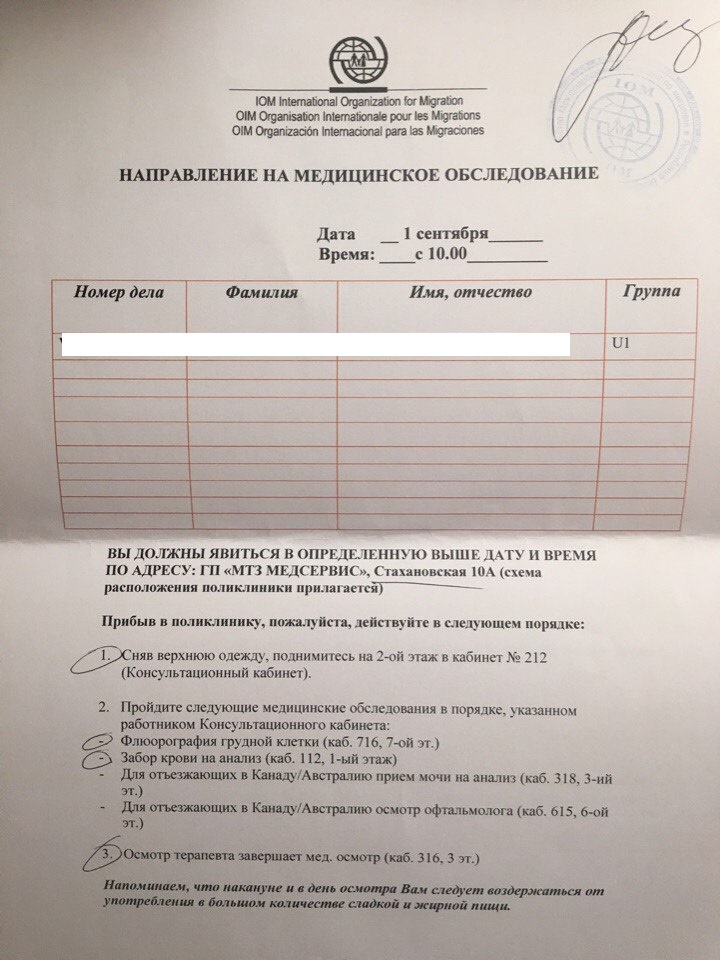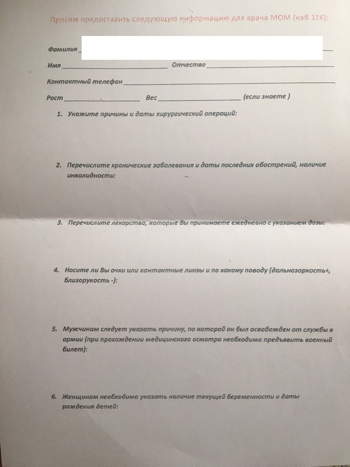 сегодня проходила мед комиссию в Минске. Назначено было на 10.30. Первым делом нужно ехать в МОМ на Горный переулок ,3. Там заполняются анкеты - одна для МОМа , вторая для терапевта (фото прикреплено, мало ли кому понадобится), уплачивается 160$, делается фото (бесплатно) и выдается пакет с инструкцией (фото), пробиркой и шприцом для забора крови, диском для флюорографии и делом, которое было сделано на основе анкеты, которую вы заполнили. Дальше со всем этим добром едете в поликлинику МТЗ на Стахановской 10а и проходите все по списку как указано на фото. Про флюорографию и забор крови ничего нового не добавлю, все как обычно. Терапевт - нормальная, адекватная женщина. Забрала анкету, которую я заполнила (фото) и прививки (похвалила что все сделано  ), померила давление, послушала и сказала, что результаты можно забрать в МОМе на Горном, 3 12 сентября во второй половине дня , то есть через 1,5 недели На все про все у меня ушло около 1,5 часа ... нигде очередей нет, что ну просто здорово