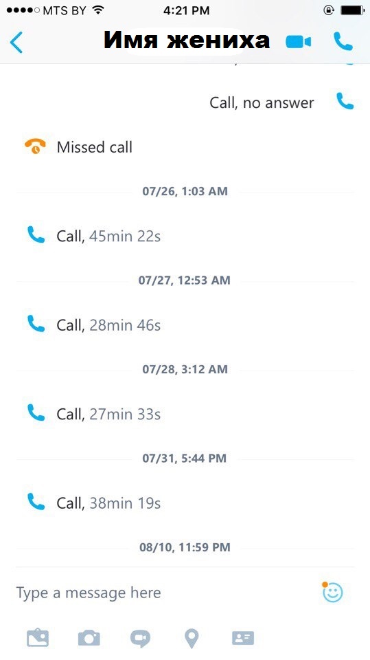 Ничего не могу понять в скайпе. Как вытащить эти скриншоты оттуда ? У нас было мало звонков, за период времени. Во основном электронная почта. Звонки были сделаны со скайпа на мобильный и городской телефон. Я вообще не могу найти эти звонки. Я думаю, что если я принесу фотографии и электронную почту , а также билеты и этого будет достаточно. С мобильного я не звонила никогда в США , только по карте иногда 2-3 раза. Евросеть карта. Там звонки нельзя распечатать. А он звонил через карту тоже и очень мало ну у меня все это дело со скайпа выглядит так (фото скрина).... кликаю на нужный ник/имя и все появляется ..... конечно же, для ЮСКИСа я выбирала те звонки, где больше часа .... если у Вас не получается найти историю звонков со своего акканта, спросите у жениха, может он сделает скрины используя свой логин а если уж не получится, то чуток больше распечатайте писем с электронной почты Поробуем удачи