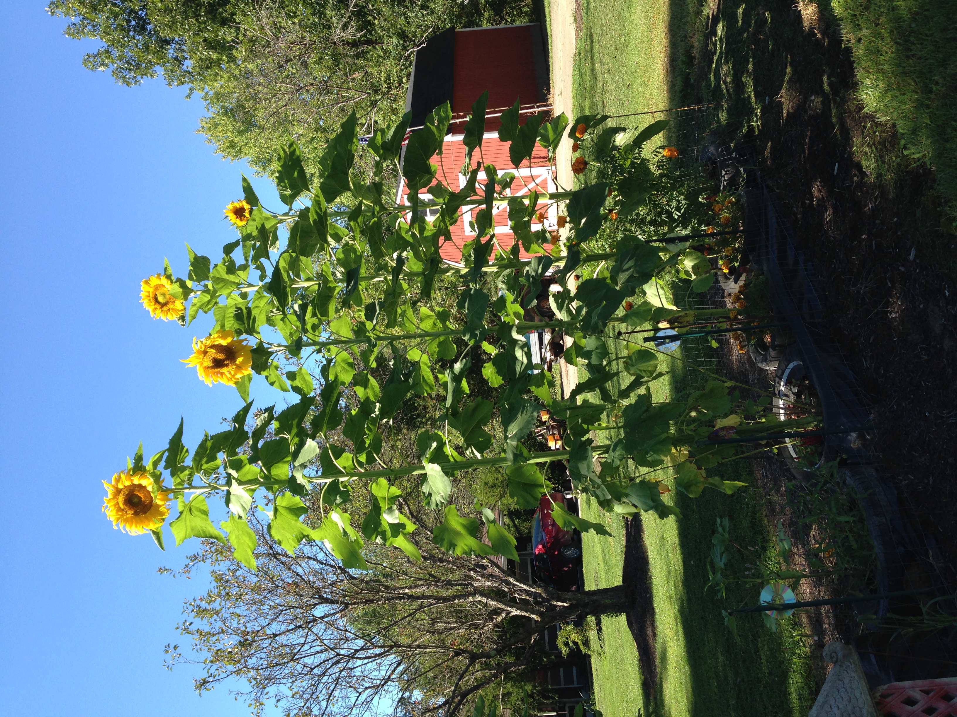 А вот такой высоты у меня выросли подсолнухи после того, как муж переудобрил землю! Гиганты!