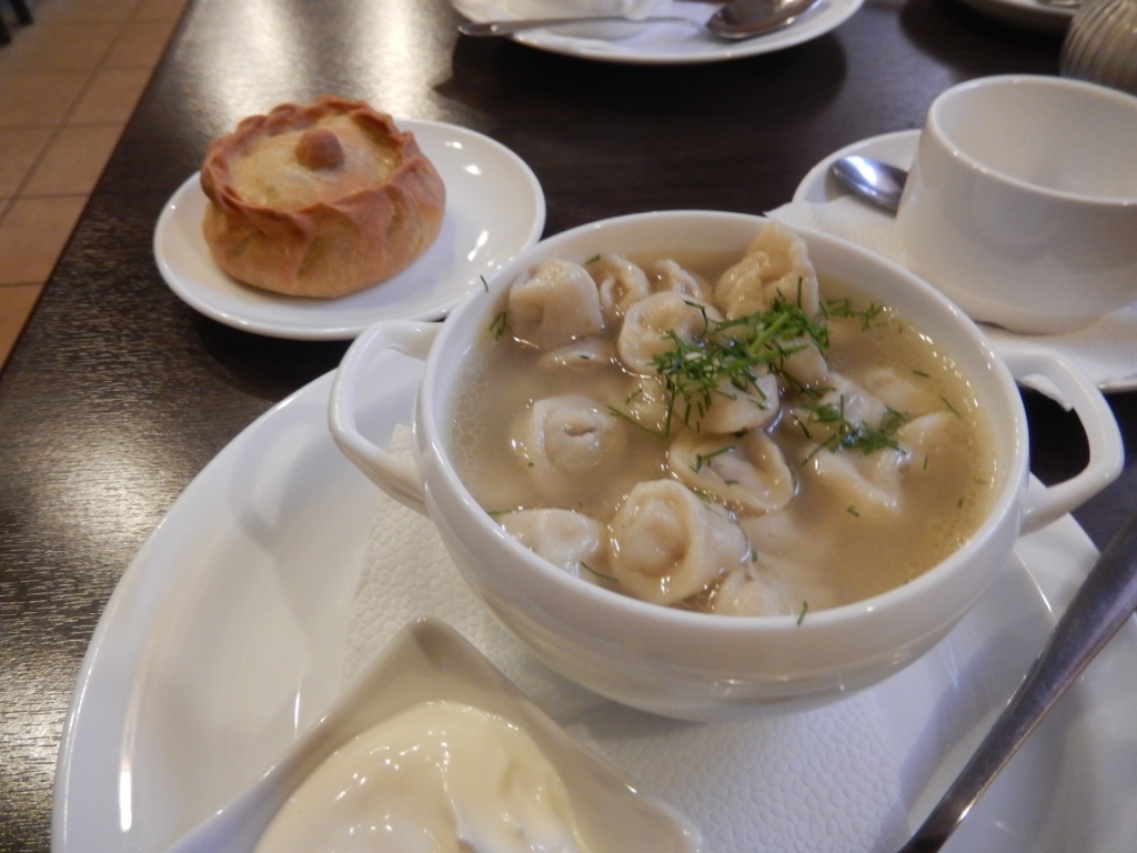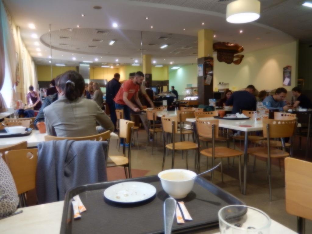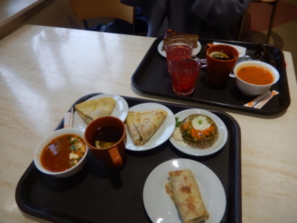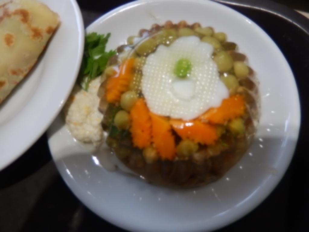 Вот еще "российский фастфуд". Очень даже.  Все повара в колпаках красивых были,волосы убраны.  Наверняка, у всех медицинские книжки.  И...даже заливное из языка!