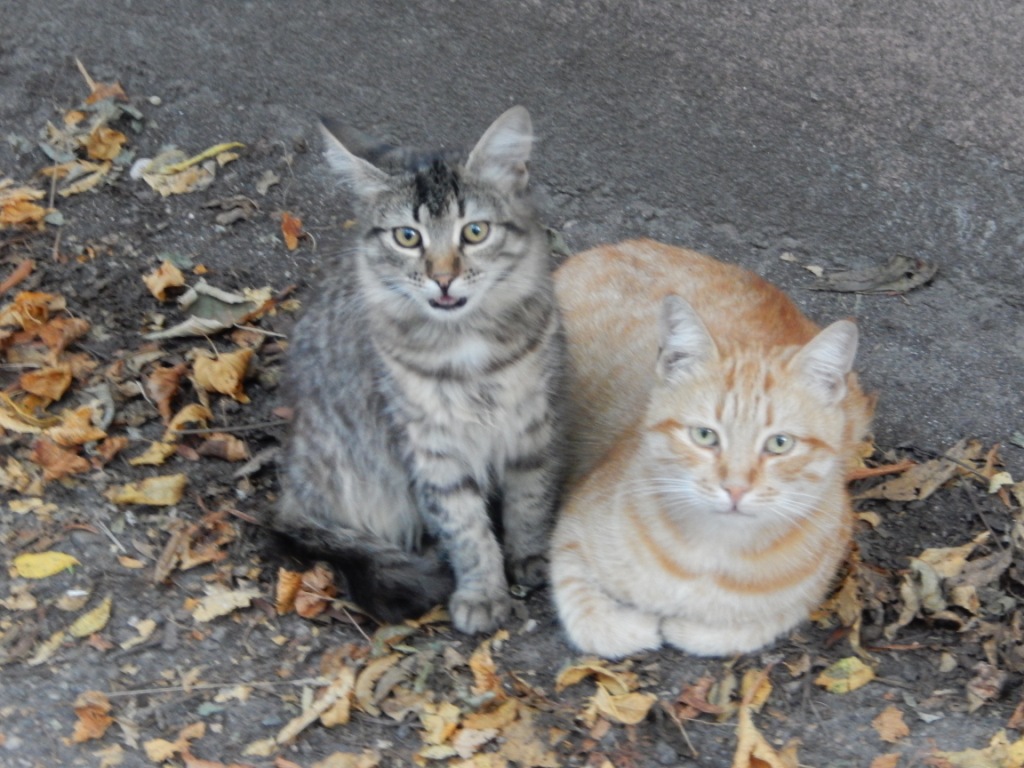 А эта пара меня поразила в самое сердце. Всегда вместе -утром,вечером- сидят рядышком на дорожке -ждут еду. А потом присмотрелась, а у рыжего котика нет ножки-нижней части....  И у него такой особенный взгляд, мудрый какой-то...