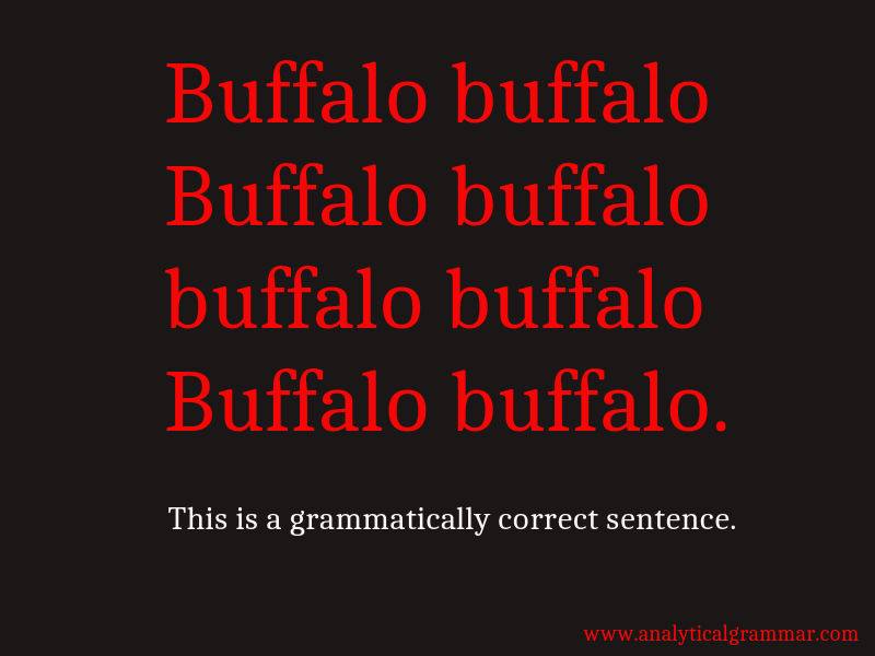 The sentence "Buffalo buffalo Buffalo buffalo buffalo buffalo Buffalo buffalo" is a grammatically correct sentence that uses no grammar.