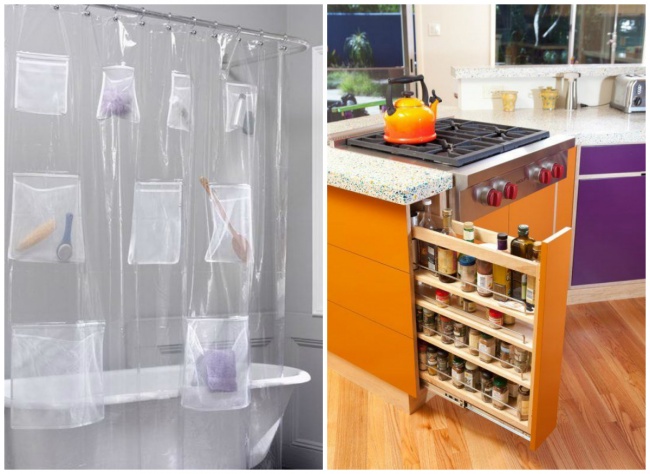 Дополнительные места для хранения вещей можно устроить практически где угодно, даже на занавеске для душа. Инструкцию вы найдете здесь.