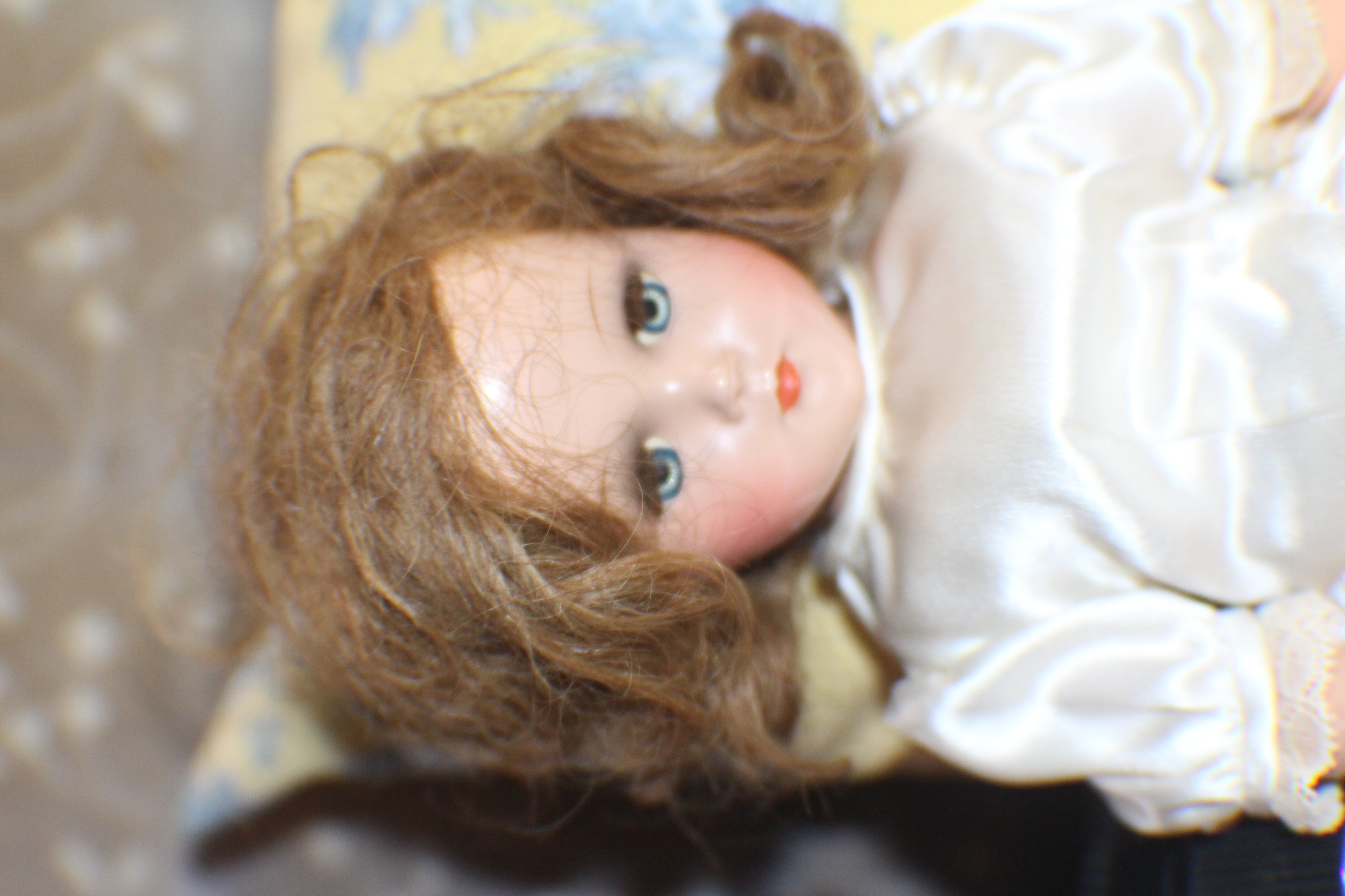 если еще интересно, то сфотаю сейчас пару, которых сама нашла и жутко торговалась. кукла настолько была грязная, что неприятно было в руки брать и волосы комком. говорю, сколько лет она у вас тут валяется и еще дольше будет валяться - вытащила не чуть ли не из груды мусора в копоти какой-то. платьице постирала, хоть и осторожно, но разлезлось. но оно и так в дырках было и такое грязное, что, наверное, все-таки, надо было стирать. у этих что я запостила просто пыльные а тут грязь но отмыла и пятна даже поотмывала и несколько дней волосы расчесывала но спасла и год под носком как шапочка находились зато теперь относительно прямы. теперь лежит ножки выпрямляет. наверное кукла 50-х Sweet sue до сих пор ходит.. на полусогнутых ногах