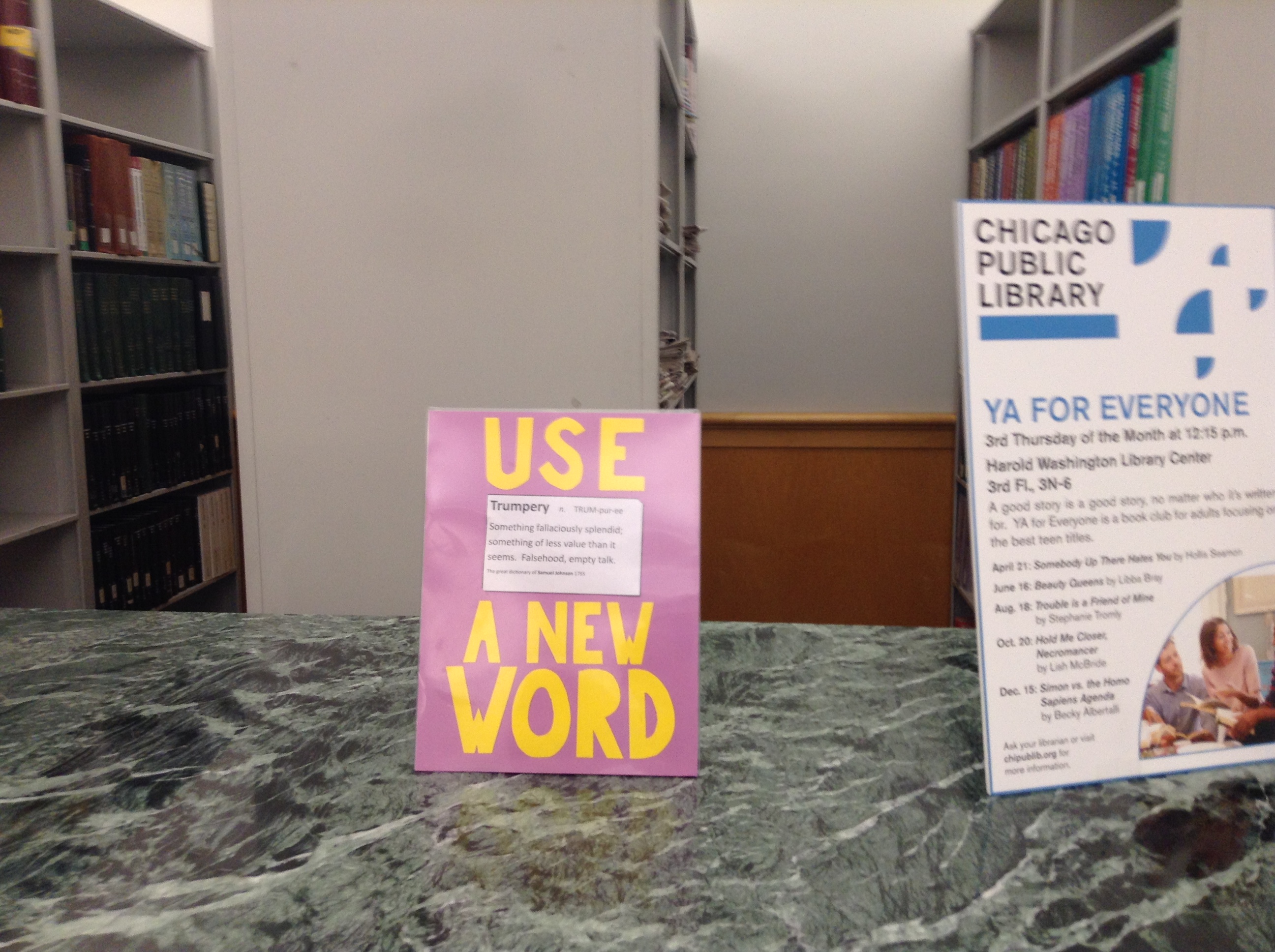 Пару недель назад зашла в нашу главную Чикагскую Public Library ... Там на одном из столов такое увидела. Окренела... Или мне скрытый умысел почудлся тогда?