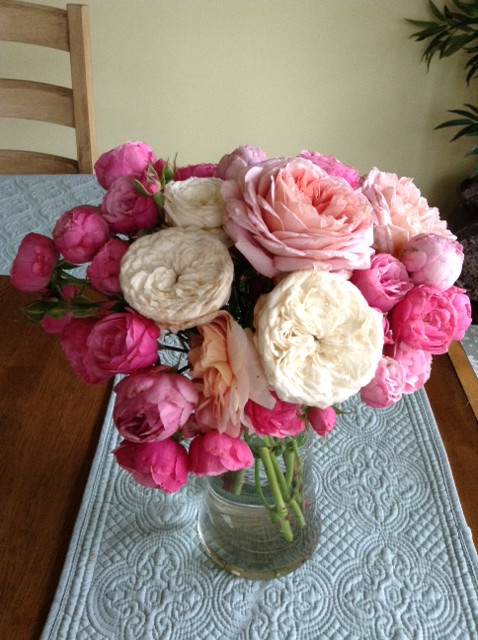 Розочки, как обещала. Новые, Kordes 1) Wedding bells - невысокий куст, цветёт неплохо, если немного не хватает полива - сбрасывает листья. В сильную жару цветок плохо открывается. 2) Savannah - Sunbelt collection. она - ОК. цветок очень быстро сбрасывает лепестки. запах -ОК. не очень впечатлила. 3) В букете - Pomponella - слева и справа розовые бамбошки, белая плоская - Pure perfume (от J and P ) Абрикосовая - Abraham Darby -David Austin 4) Pomponella - большая растёт - начала привязывать её к трейлису. Очень хорошая роза. Не болеет, цветёт хорошо. 5) Solero - небольшой компактный куст, очень хорошо цветёт, не болеет 6) Plum perfect - Sunbelt collection, цвела всё лето, цвет хорошо держит, обещает быть высокой. Не болеет. Хочу ещё парочку заказать.
