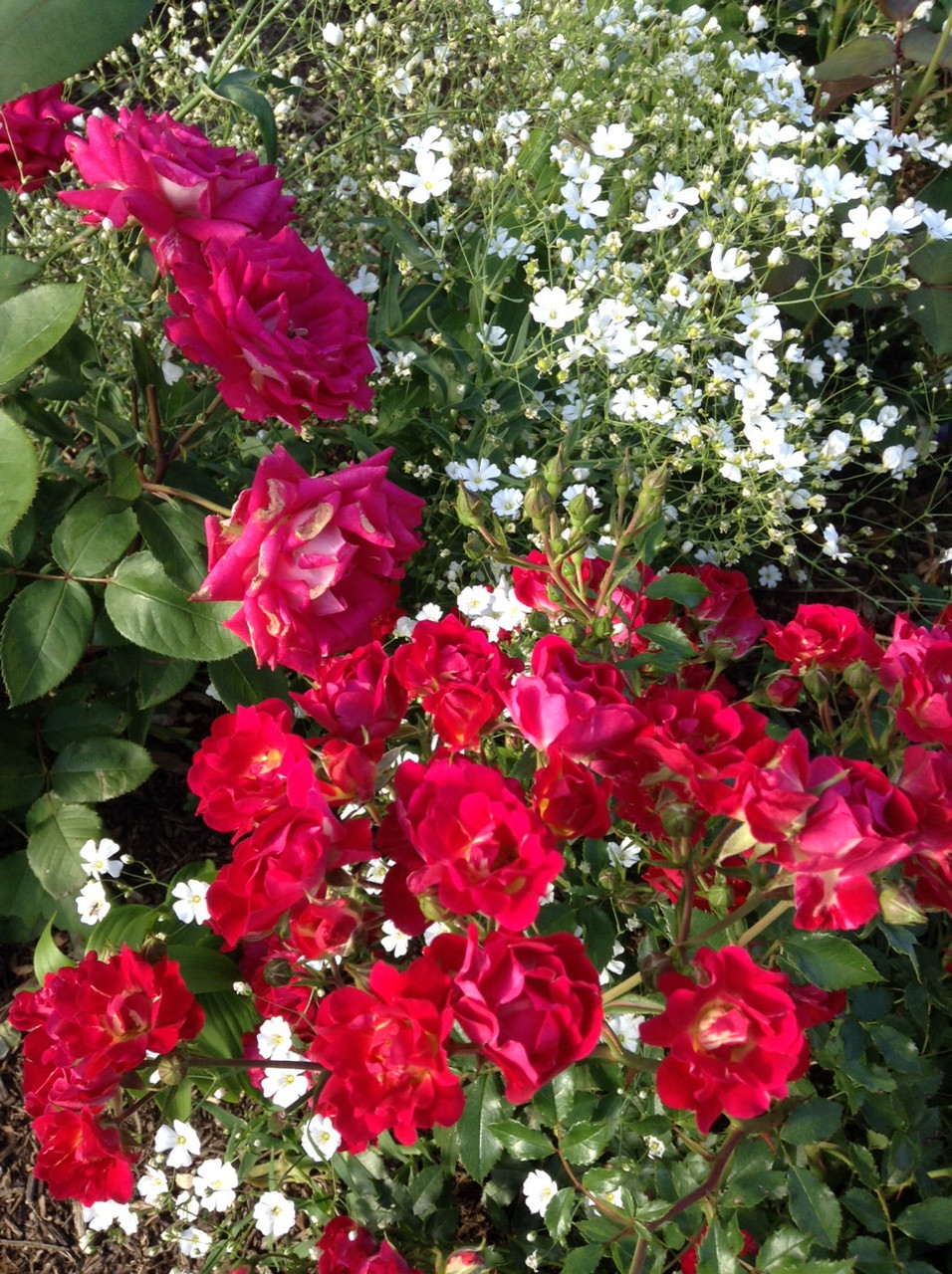 1) На переднем плане -Electron (очень хорошо цветёт, только болеет часто) Sweet drift rose на заднем плане. 2) На переднем плае - Red drift rose, за ним Love rose (очень хороша роза, но мне цвет вообще никак-выкинула) 3) На преднем плане - Pope corn drift rose, за ней Julia Child. Обе очень хорошие розы