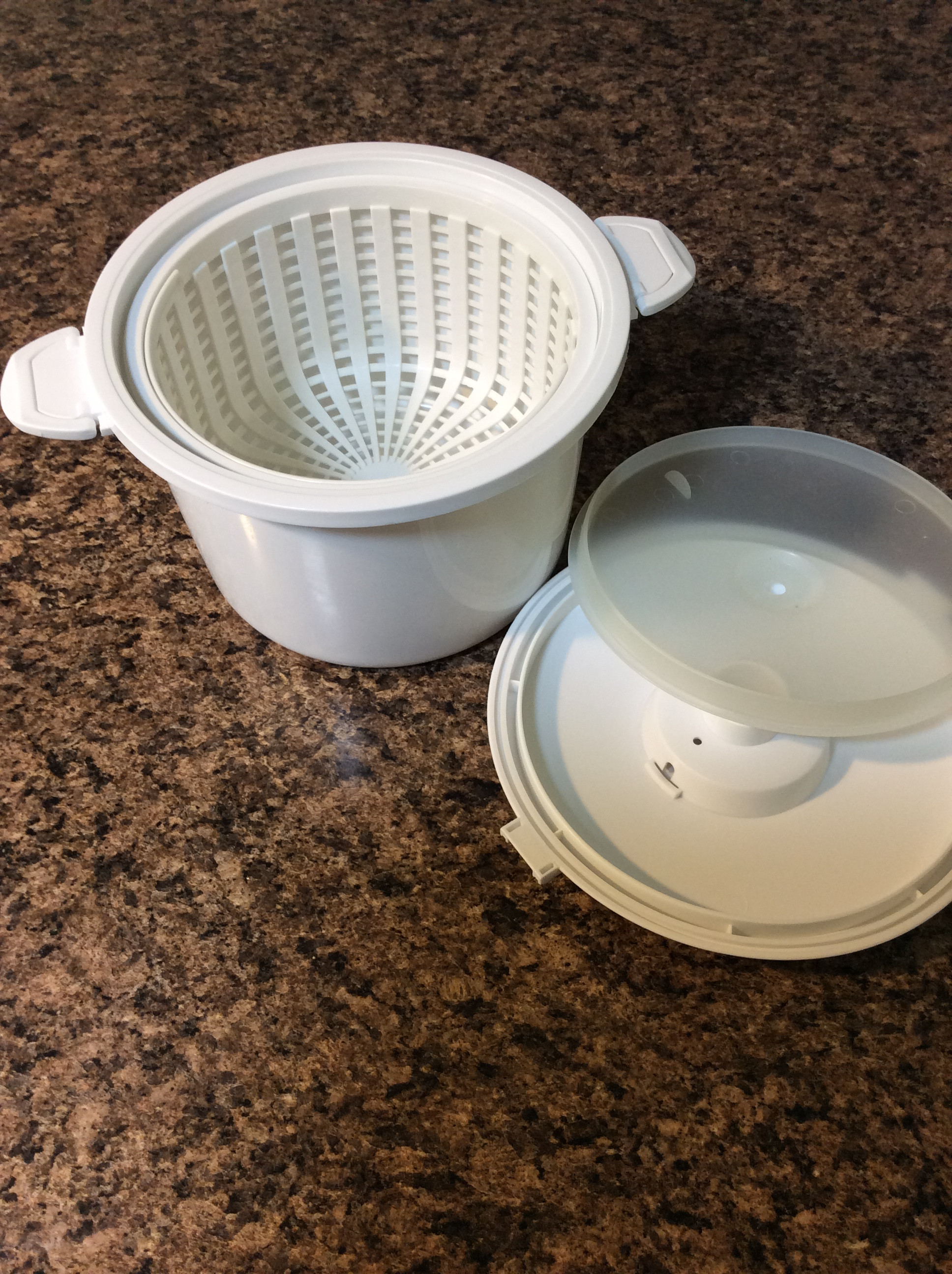 В пароварку для микроволновки (15$ from Bed bath & beyond) наливаю чуть чуть водички на дно, а на сетку - какие -нибудь овощи - цветная капуста\брокколи\green beans\кабачки Готовятся 6-7 мин.