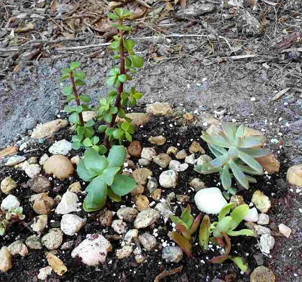 Пересадила я все-таки растюхи в моем радостном мексиканском горшке  Очитки обкорнала... но обкорнаю еще больше, они растут очень быстро и вверх, а я люблю, когда они кустистые и толстые  Трава пересажена из прежней композиции и терзает мою душу сомнениями... По наблюдениям ей нравится полив, что совсем не входит в мои планы, т.к. хочется, что сукки росли медленно и больше толстели, чем набирали роста. Ну, посмотрю... если не выживет- будет вынос тела. Вот... хочу еще ракушки добавить! После пересадки получилось много обрезков, выбросить которые рука не поднялась. Сделала на самом жарком месте экспериментальную клумбу для суккулентов и повтыкала их туда. А что.. у сестры-ин-ло алое растет на улице, причем не в самом светлом месте и ничё... не жужжит