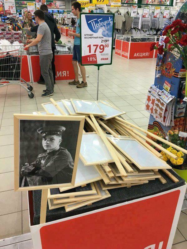 A вот по поводу праздника Дня победы...не кощунство это продавать, и еще уценкой делать? раньше хоть почтили живых ветеранов, а теперь их портреты в супермаркетах продают? Еще раз повторяю-я не против самого праздника или события, а то, как сейчас начали это отмечать, когда тех ветеранов уже в живых нет