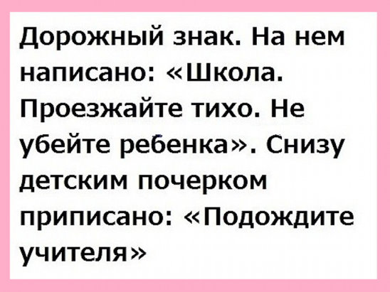 Следователь: - Об убийце ничего не известно, кроме того, что он работает учителем. Кстати, как ваша фамилия, я забыл? Подозреваемый: - А голову дома ты не забыл?!