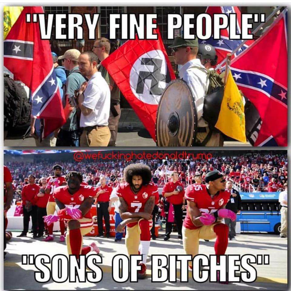 Маленькое предисловие. В Америке есть два лидера среди всех видов спорта в смысле их популярности среди зрителей. Это американский футбол и баскетбол. Соответственно, чемпионаты NFL и NBA являются наиболее популярными соревнованиями среди десятков миллионов болельщиков. Большинство и футболистов, и баскетболистов – афроамериканцы. В последнее время произошли несколько случаев, когда во время исполнения национального гимна на церемониях перед футбольными матчами одни спортсмены демонстративно становились на колени, другие садились. Делали они это в знак протеста против поднявших голову с момента прихода к власти нынешней администрации расизма, белого национализма и различных ультраправых движений, ратующих за превосходство белых. Спортсмены протестуют таким образом против политики нынешней администрации, если не поощряющей прямо проявления расизма и превосходства белых, то де-факто не осуждающей их (достаточно вспомнить печальные события в Шарлоттсвилле и реакцию на них президента). Трамп обрушился в своем пятничном выступлении на спортсменов, «не уважающих гимн» и потребовал от владельцев футбольных команд немедленно уволить всех футболистов, «не встающих при исполнении гимна и не уважающих американский флаг», назвав спортсменов публично «сукиными детьми». «Уберите сукиных детей с поля немедленно, прямо сейчас. Вы уволены!», - кричал рассвирепевший президент.