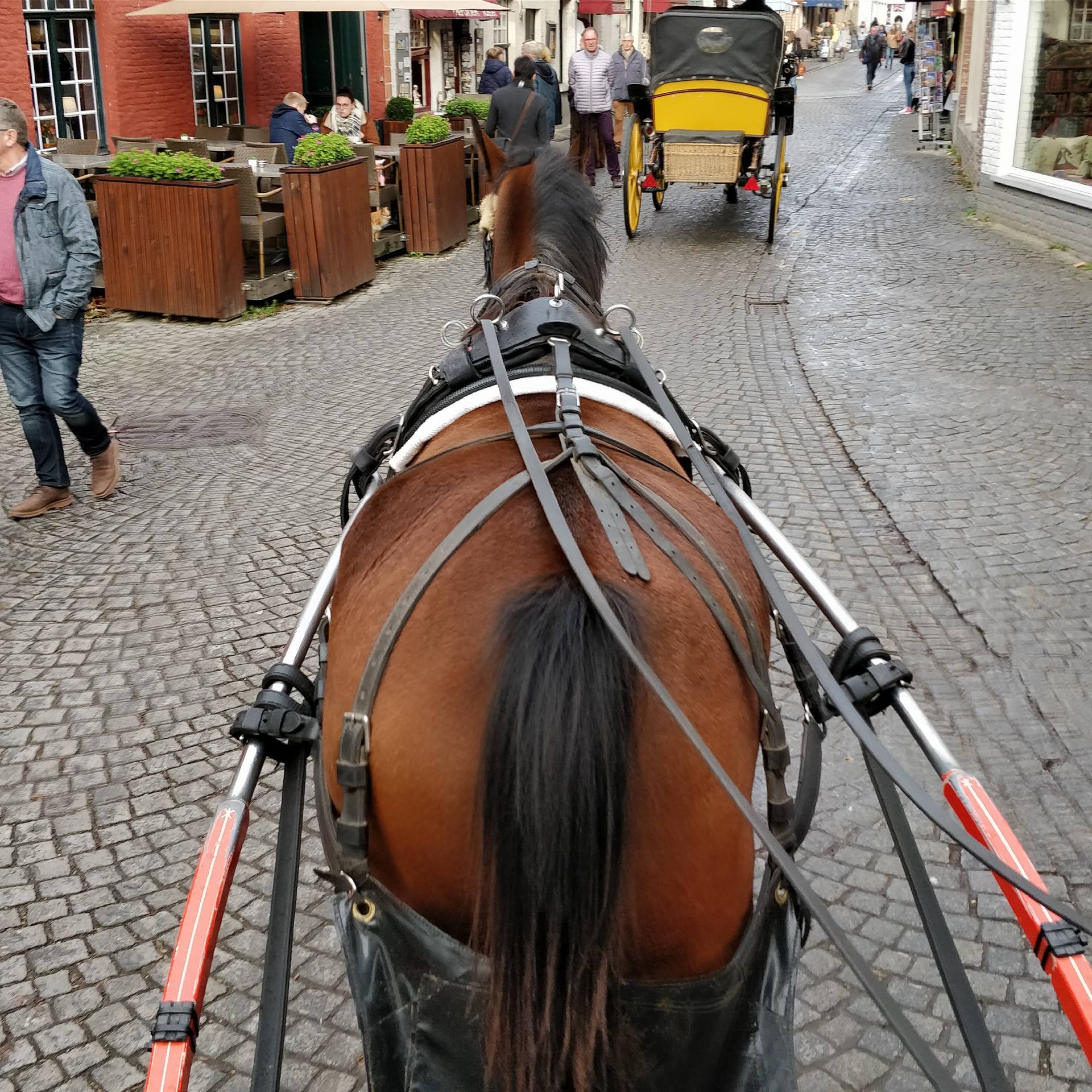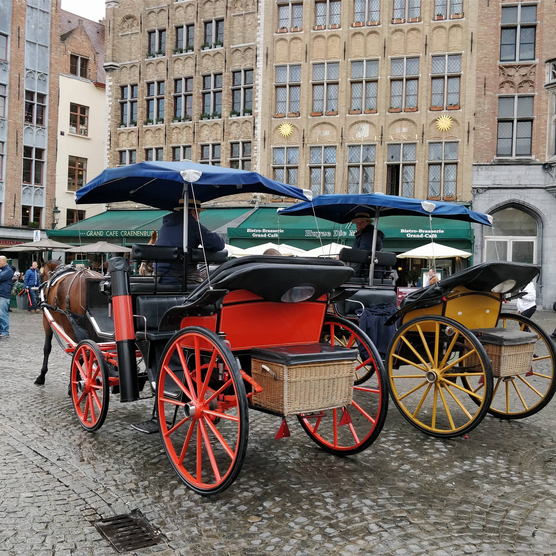 Как видите, дождик был, так что экскурсию по каналам решила отложить до лучших времен Зато на лошадке, вернее "на извозчике ",как в старину по старому Брюгге довелось прокатиться