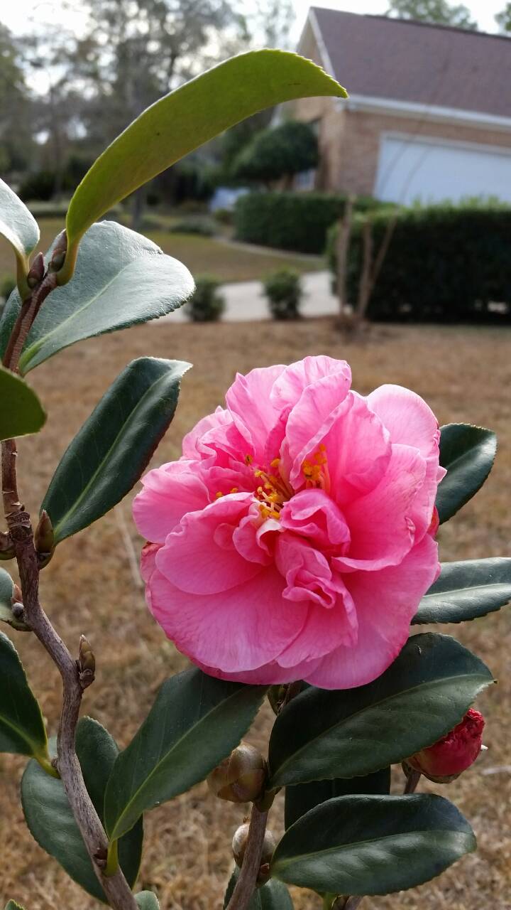 Зацвела таки моя "кучерявая" камелия (Egao Corkscrew), чему я несказанно рада