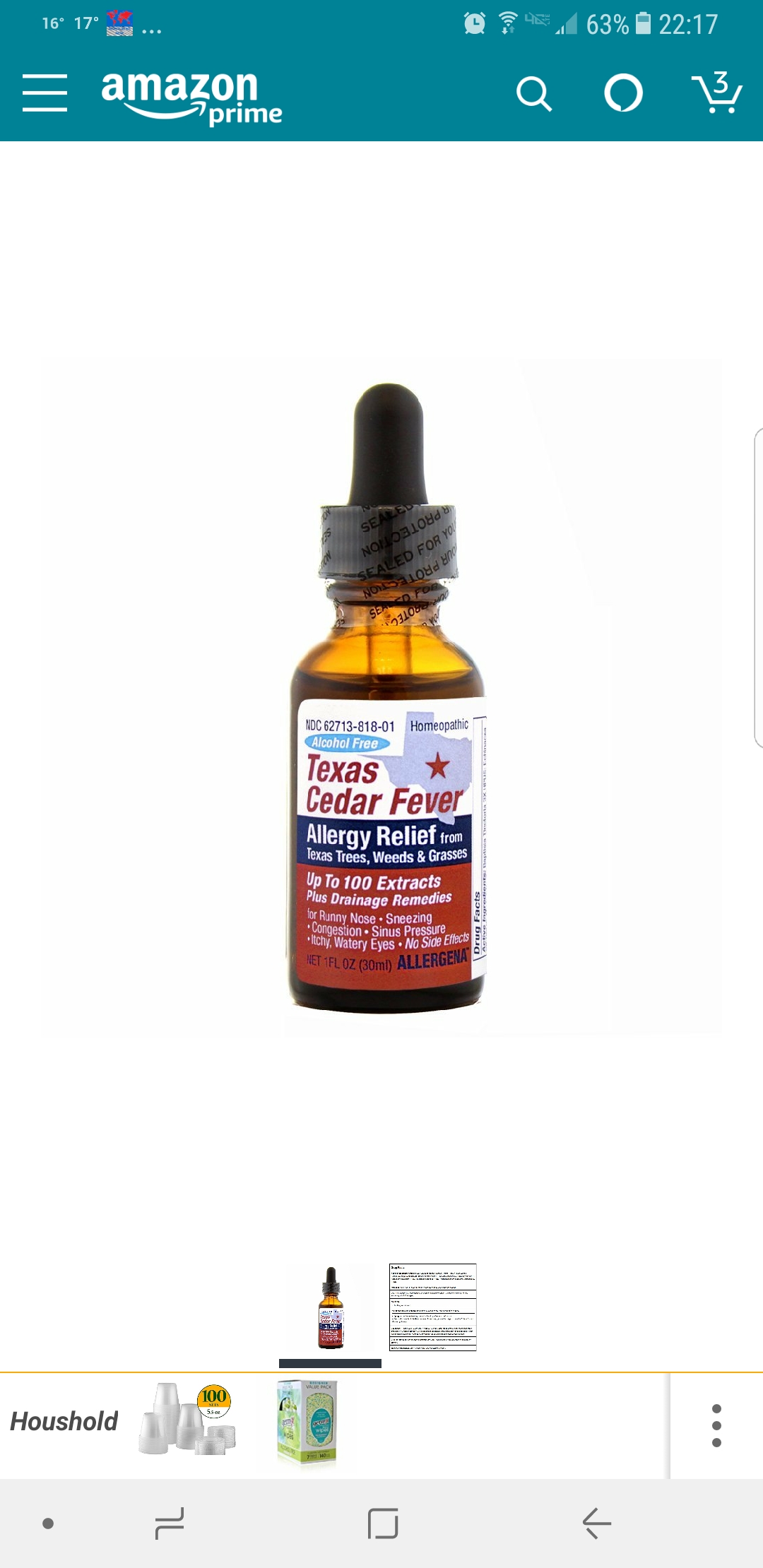 Эльза, сейчас еще cedar цветет. У сына каждый год с начала осени и до весны кашель был из-за postnasal drip. В этом году начала давать ему, пока... ттт... все чисто. Есть такие же капли для плесени. Только нужно внимательно читать, так как одни просто гомеопатия, а есть с малым количеством белка на который аллергия и в добавок гомеопатия, вот они и "учат" организм не реагировать на белок и аллергию снимают. У меня дочь такие капли принимает, но ей делают специально, так как там другая песня. В обоих случаях очень довольны результатом. Для cedar беру вот эти, в НЕВ, там же видела и для плесени, и для клеща и еще что-то.