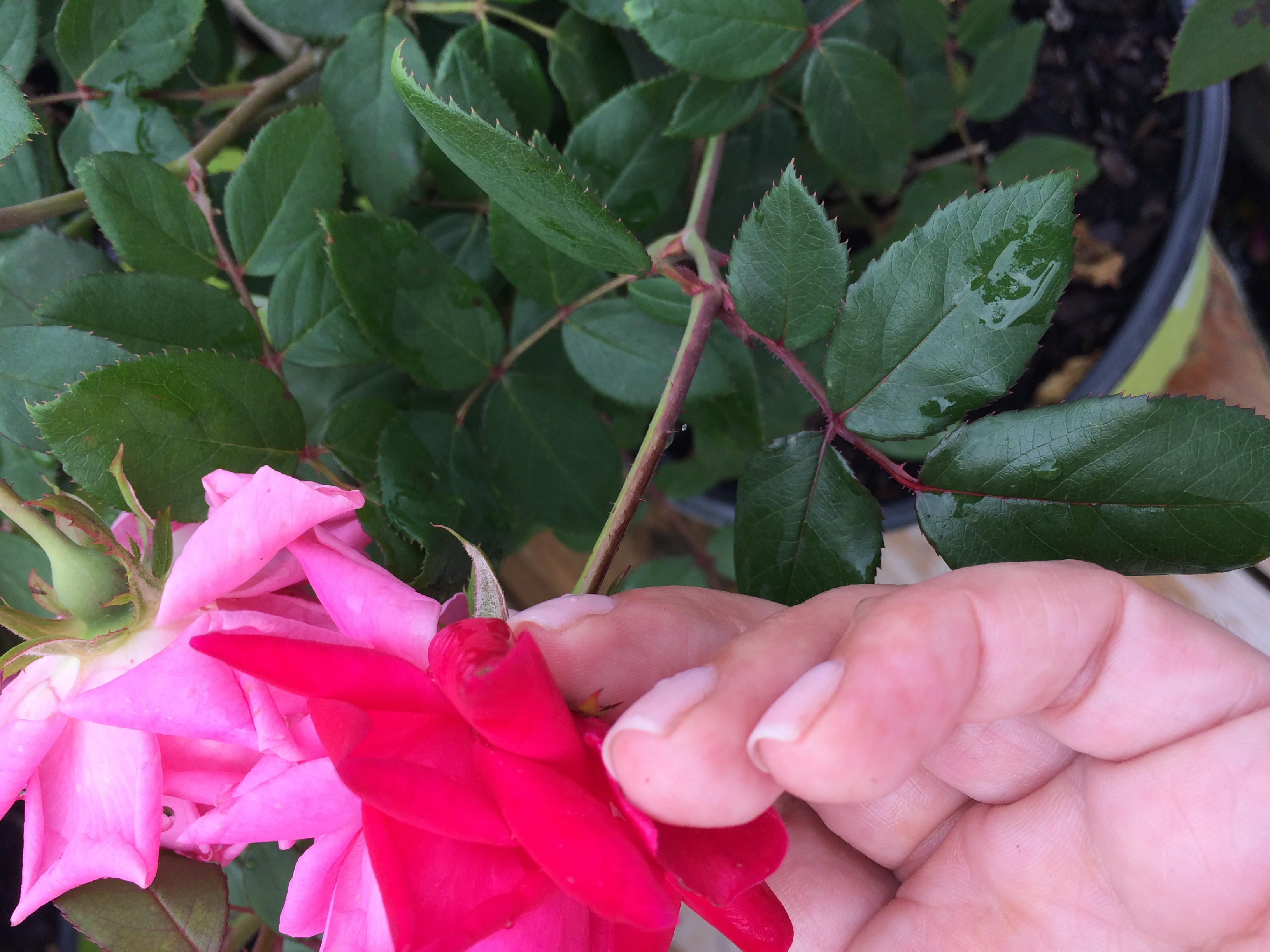 Вот такой интересный пинк 2 нок аут у нас продаётся. Такая веточка только одна на кусте. Даже сама ветка двухцветная.