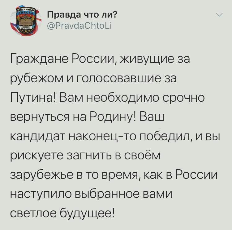 Заголовок сообщения: Re: Давайте про кандидатов на пост Президента РФ! Добавлено: 21 мар 2018, 20:19 |