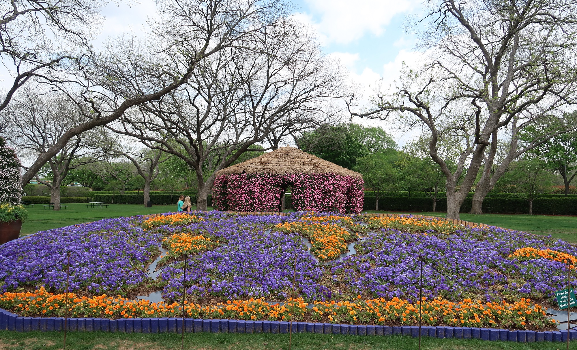 Уже тепло. Вчера гуляли без верхней одежды. Цветов много. Но деревья пока голые стоят. :c_laugh