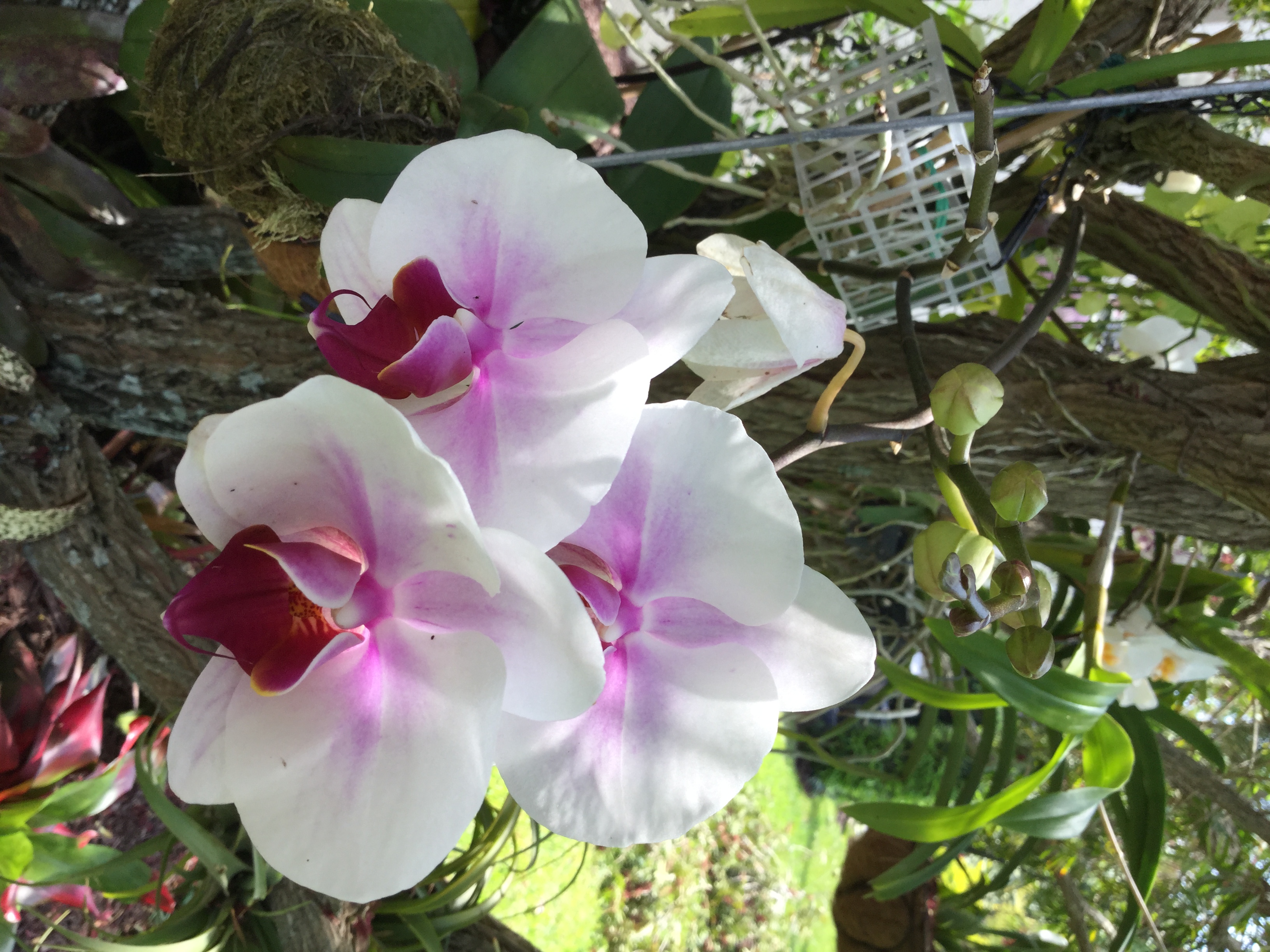 Berizka писал(а): Melissa,  Ну, ты молодец! (я б так не шмогла, хи-хи) А теперь скажи мне, по что цитрусы выбросила и не сказала? ( надеюсь хоть в добрые руки попали?) А гуавы, мелкие которые, строберри?? Бромеляды, класс. Их стоооолько разновидностей и цветвой гаммы. Буги, моя слабость.  Кротоны тоже. Красоту доведёшь до конца, поделись фотками, плиз. Да у цитрусов постепенно стали ветки отсыхать. Я их обрезала, но не помогало, в конце концов плюнула и пошли они в мусорку. Оставила только два пондероса лимона в горшках ( они как бонсаи выглядят) и выдрала почти загнувшееся апельсиновое дерево из земли и воткнула взамен оставшийся персиан лайм. Но он тож не ахти выглядит. Одна из гуав точно так же погибла, все дерево ветка за веткой высохло. Жалко очень, она в том году обильно отплодоносила. Второе сидит, цветёт сейчас, но мало. Я ещё таки вытренировала розовую гуаву эспальерой по забору, ветки метрами в разные стороны я замучилась подстригать, а плодов всего две штуки, да и те упёрли. Я так долго ждала когда созреют, думаю созрели надо сорвать сегодня и забыла, а потом по темноте не хотелось уже шарахаться было. Утром бац - и нет их уже. Я разобиделась и выкинула ее. Никаких нерсерей, остальные кусты и растения кто тоже в мусорку пошёл, кто к соседям, а пальма с папоротниками и бугой деревом в лес. Буга шикарное дерево лолипоп, большое, но задолбалась я ее подстригать и мусора много когда цветёт. Я кое как до леса дотащила и просто поставила там, она зацвела. Сосед на днях ее посадил как положено, если приживется, то будем любоваться и забот никаких. Все орхи остались, парочка ваз с дфорными ниче сидят, а все остальные перекочевали в корзины и на боттлбраш дерево. Тоже вымахало такое здоровое, вот только что отцвело и я его позавчера обстригла. Вот оно до и после с орхами и бромелиадами