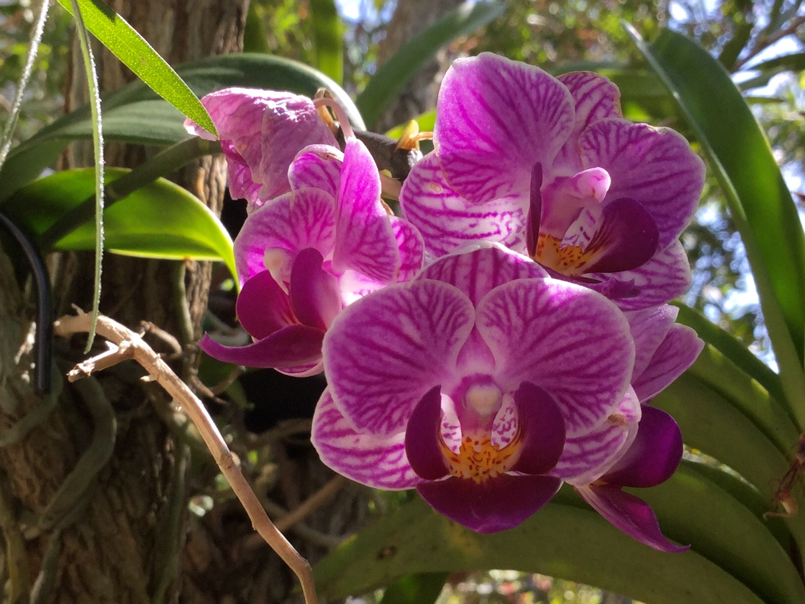 Berizka писал(а): Melissa,  Ну, ты молодец! (я б так не шмогла, хи-хи) А теперь скажи мне, по что цитрусы выбросила и не сказала? ( надеюсь хоть в добрые руки попали?) А гуавы, мелкие которые, строберри?? Бромеляды, класс. Их стоооолько разновидностей и цветвой гаммы. Буги, моя слабость.  Кротоны тоже. Красоту доведёшь до конца, поделись фотками, плиз. Да у цитрусов постепенно стали ветки отсыхать. Я их обрезала, но не помогало, в конце концов плюнула и пошли они в мусорку. Оставила только два пондероса лимона в горшках ( они как бонсаи выглядят) и выдрала почти загнувшееся апельсиновое дерево из земли и воткнула взамен оставшийся персиан лайм. Но он тож не ахти выглядит. Одна из гуав точно так же погибла, все дерево ветка за веткой высохло. Жалко очень, она в том году обильно отплодоносила. Второе сидит, цветёт сейчас, но мало. Я ещё таки вытренировала розовую гуаву эспальерой по забору, ветки метрами в разные стороны я замучилась подстригать, а плодов всего две штуки, да и те упёрли. Я так долго ждала когда созреют, думаю созрели надо сорвать сегодня и забыла, а потом по темноте не хотелось уже шарахаться было. Утром бац - и нет их уже. Я разобиделась и выкинула ее. Никаких нерсерей, остальные кусты и растения кто тоже в мусорку пошёл, кто к соседям, а пальма с папоротниками и бугой деревом в лес. Буга шикарное дерево лолипоп, большое, но задолбалась я ее подстригать и мусора много когда цветёт. Я кое как до леса дотащила и просто поставила там, она зацвела. Сосед на днях ее посадил как положено, если приживется, то будем любоваться и забот никаких. Все орхи остались, парочка ваз с дфорными ниче сидят, а все остальные перекочевали в корзины и на боттлбраш дерево. Тоже вымахало такое здоровое, вот только что отцвело и я его позавчера обстригла. Вот оно до и после с орхами и бромелиадами