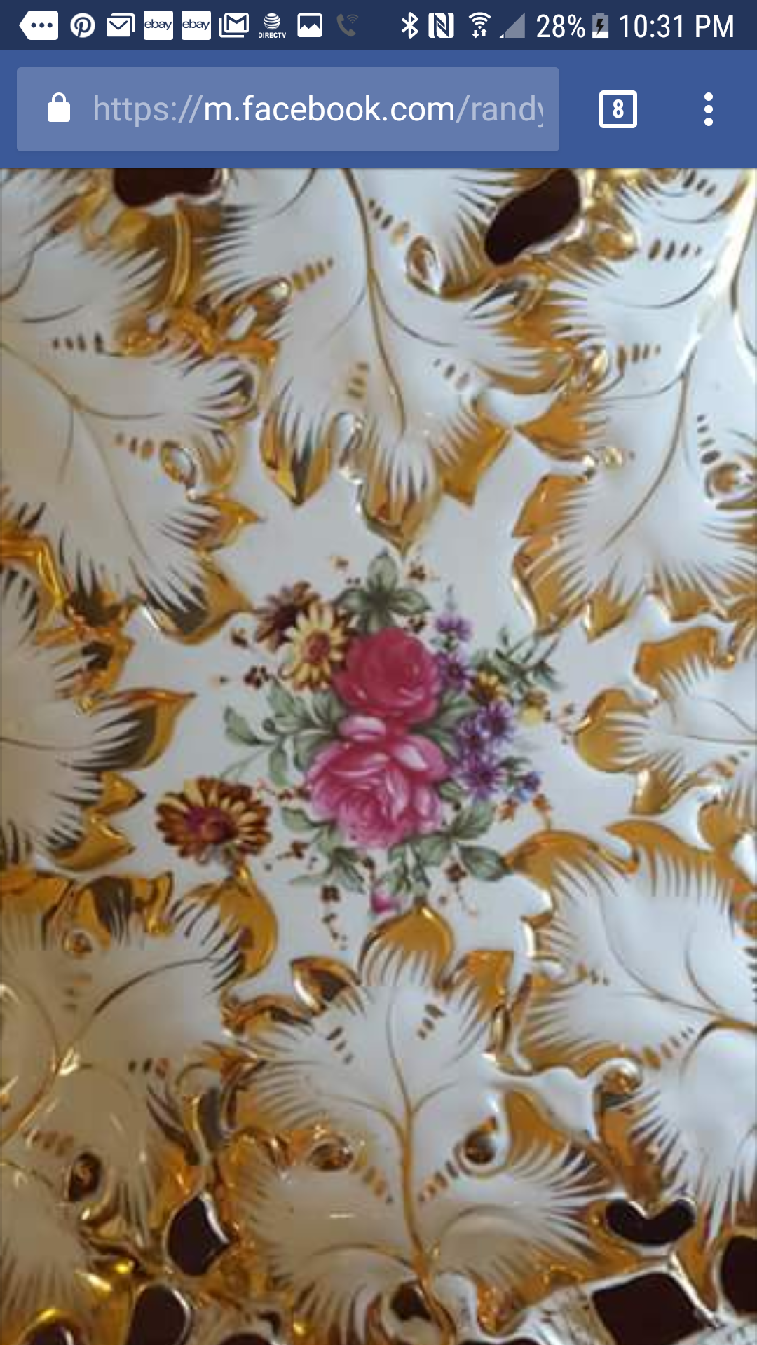 середина с розочками напоминает лимож, хотя широко распостр. Сочетание с золоченными резными листьями - начало 20 в.?