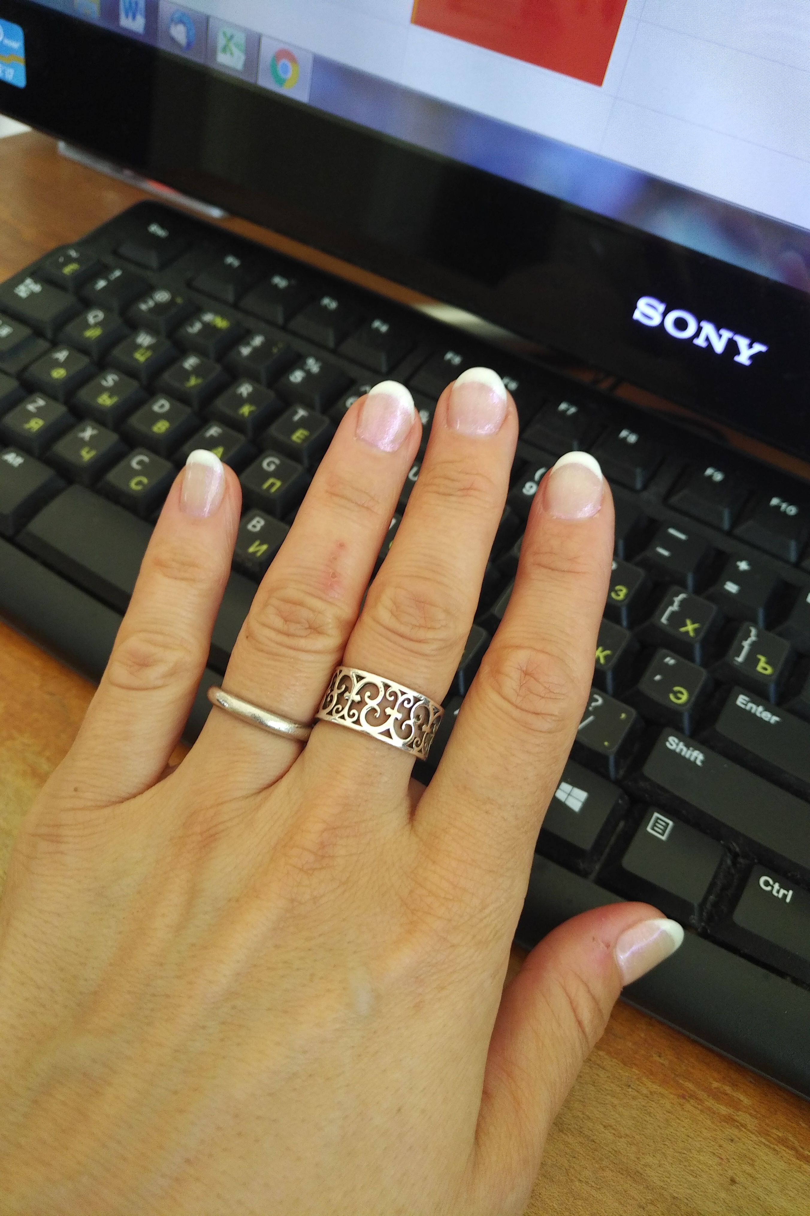 krolik99 писал(а): Маникюр всегда такой нравился, "освежает " руки, много к чему подходит. И края, смотрю, продолговато сделали, а не прямоугольно. Хорошо  Спасибо, Кролик!Мне надо было для контраста запостить мои натуральные ногти до того как. Но у меня недостаточно сильный характер для этого  Запостишь, и прославишься на форуме на всю жизнь. На это я пойтить не могу Это гель. Точнее, LCD, но это, вроде, тоже гель. Я просила покороче, она мне и так их отчекрыжила. Но смотрится длинно, потому что белую полоску нарисовала. Я хочу менее остро подпились. Но боюсь. Помню, в России подпиливала, и проблем не было. А мама на меня накинулась - говорит, вот, испортишь, вода туда попадет, и все отвалится. I guess, мама на меня до сих пор имеет большое влияние. Подскажите, христа ради, кто знает наверняка - можно LCD, покрашенный сверху лаком, пилить?!! Они сверху покрыты шеллаком, если я правильно поняла. Не испортятся?!!! А то у меня так ручки и тянутся их еще подпилить.