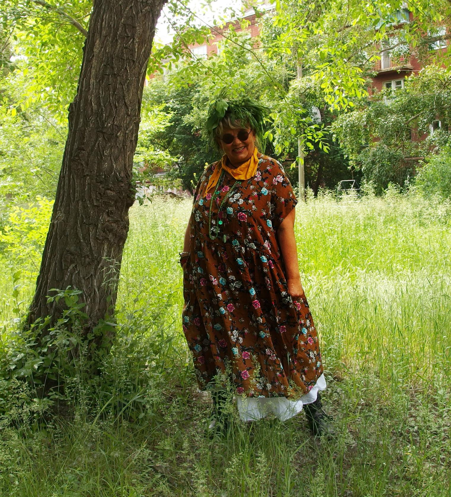 а вот какая замечательная! я как-то уже писала о ней! Коньяков Ольга! 57 лет - не смущает ее морщинки и несовершенство фигуры))) она очень творческая личность и нашла себя в разнообразных его проявлениях ... сейчас создает одежду,которая пользуется очень большим спросом...все своими руками в различных техниках!!!! Я ею и ее работами восторгаюсь( это только мое мнение... не навязываю никому)