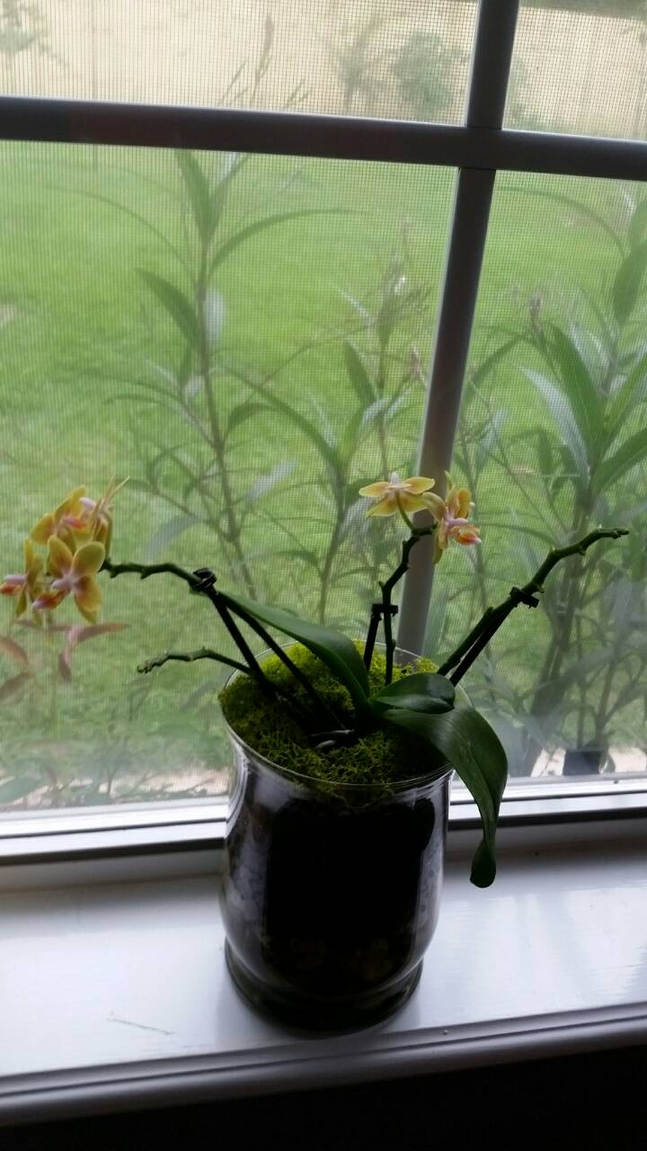 Открылось второе дыхание у орхидей. Миничка, купленная в мае (нижнее фото) отцвела, но цветоносы не засушила. 2 из 4х зацвели по новой. Остальные два- с почками ждут своего часа