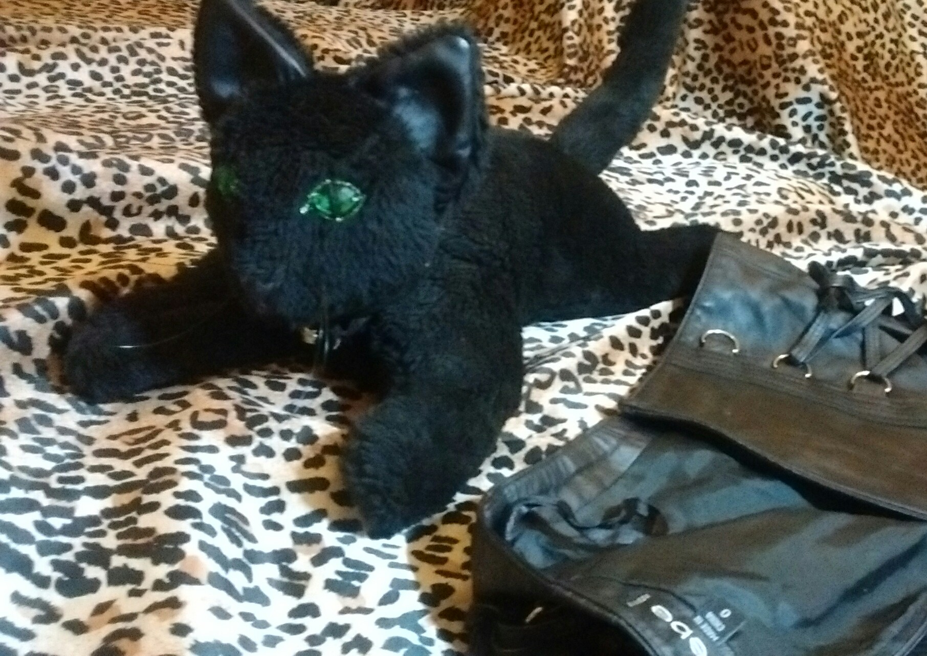 Девочки, умер мой котейка, 14 лет. Рак, 2 года по онкологам, глаз потерял, я писала здесь, на втором- операция-сохранили, вообшем отмучался. Многие не понимали нас, типа зачем лечить рак, мучить его, но есть новые способы лечения рака мелких клеток, это стоило того. Кстати, самый продвинутый вет-онколог в атланте, джорджия. Мы хотели клонировать, но кеартейкер ошибся, клетки нельзя в морозильник. Вообшем, у нас были сомнения, этического плана, сейчас есть опция хранения клеток, но не вышло. Он такой уникальный был! Он еше в ноябре умер, а я только сейчас о нем говорю. Вот за один день сшила его копию, свою кожанную юбку не пожалела, прям не хотелось ждать, вот такой красавчик сейчас на кровати.