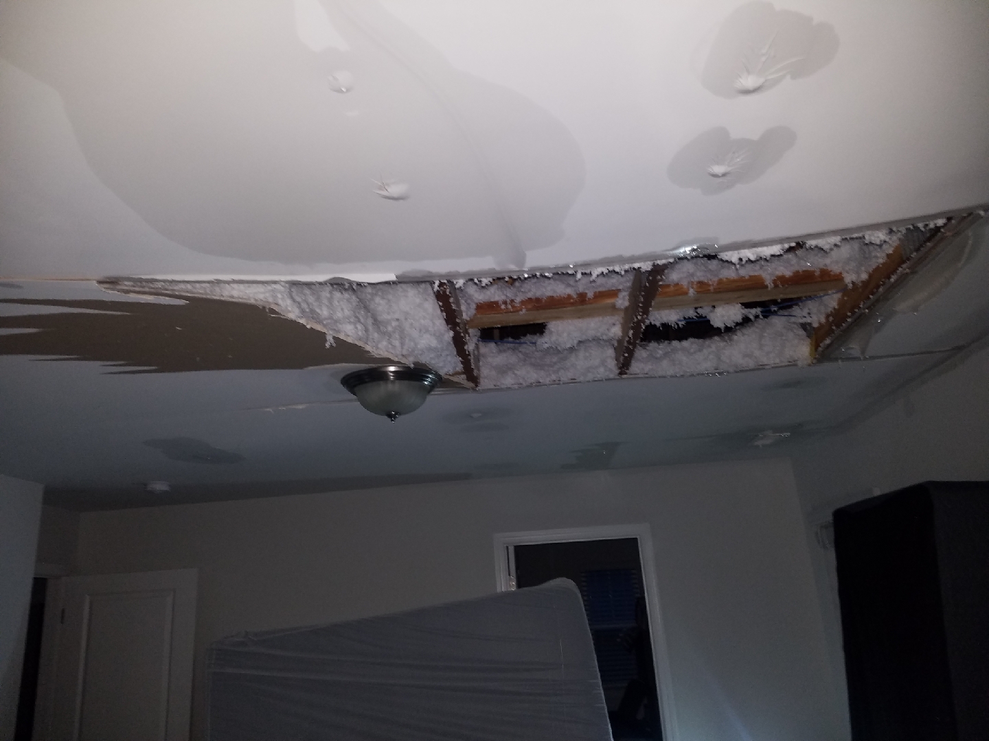 Из дома с дырой в крыше: Marv made it! Crazy man took off last night, just arrived in the hood an hour ago. Hes trying to salvage as much as he can but our house isnt looking good. Master bedroom / bathroom is destroyed & soaking downstairs as well.