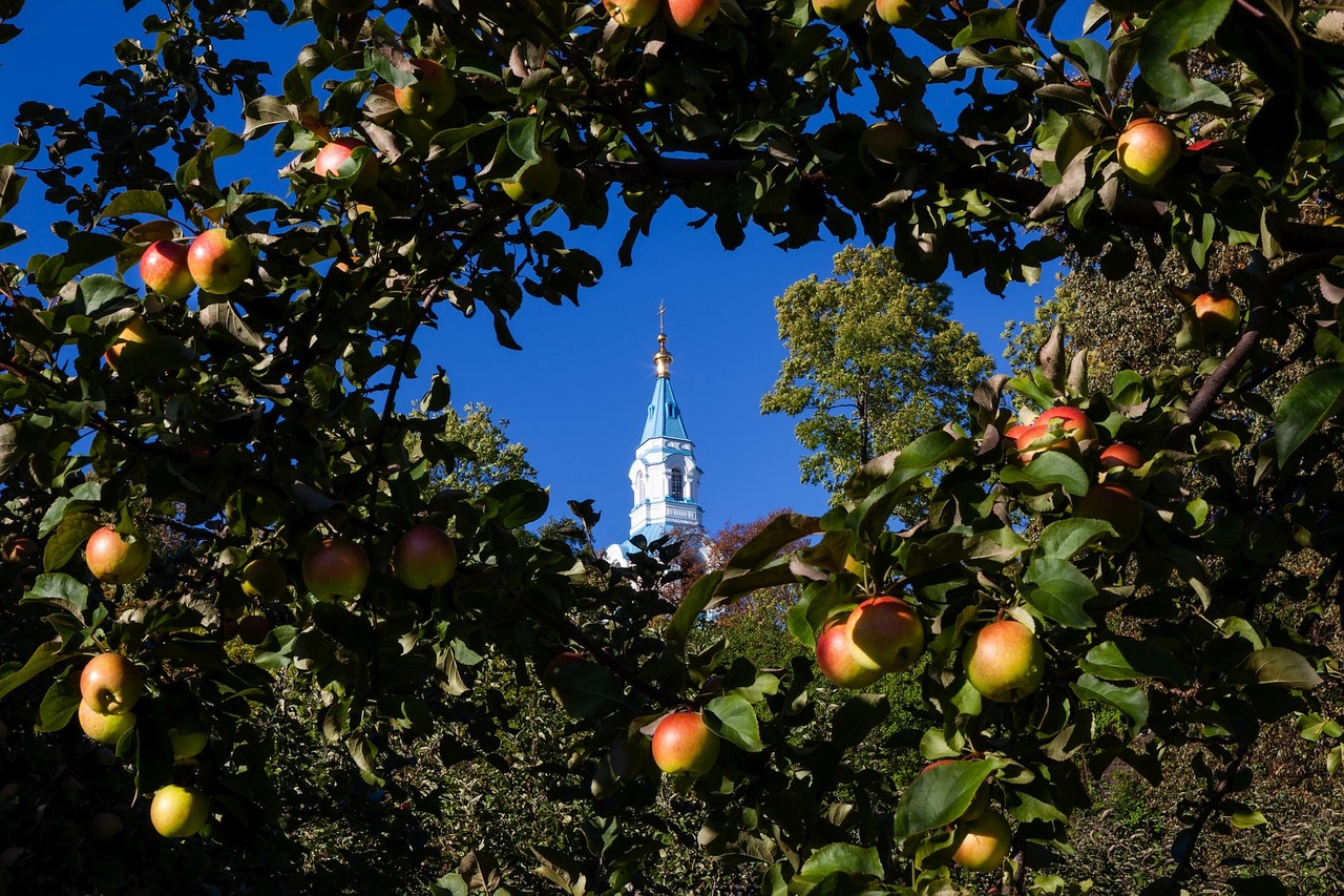 Эти яблони просто чудо! Мы были в начале августа, яблоки были ещё незрелые, но уже очень вкусные. Дочку все угощали Монахи ещё Старого Валаама выводили новые сорта, каких больше нет нигде. А ещё они делают бесподобный сыр и кисломолочку.