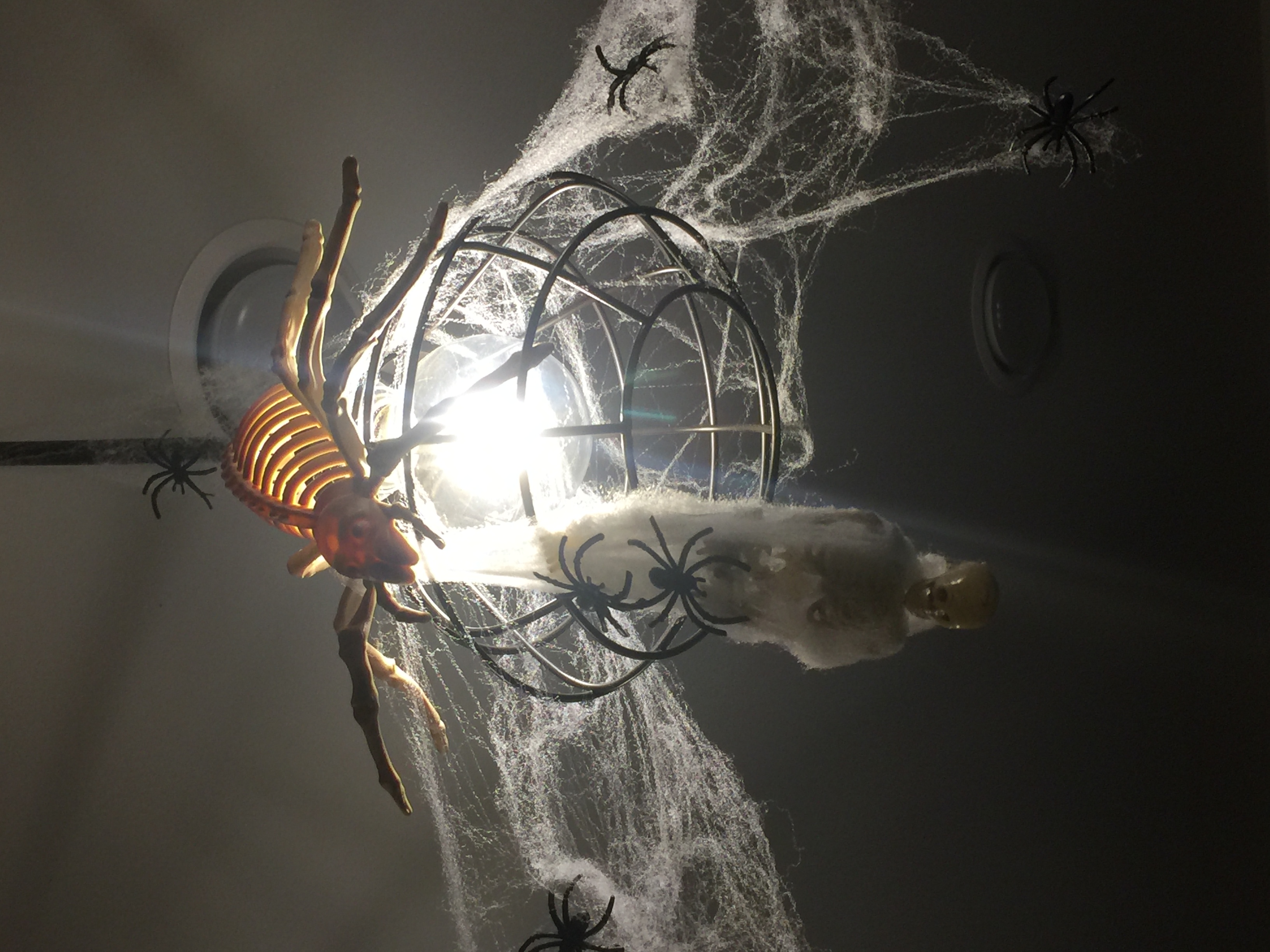 Ну и так как в доме маленький ребёнок, то украшаю только там, куда дочь не может дотянуться. Правильно, люстру и пенданты. Она была со мной в магазине, помогала складывать черепа в тележку. Так смешно было.