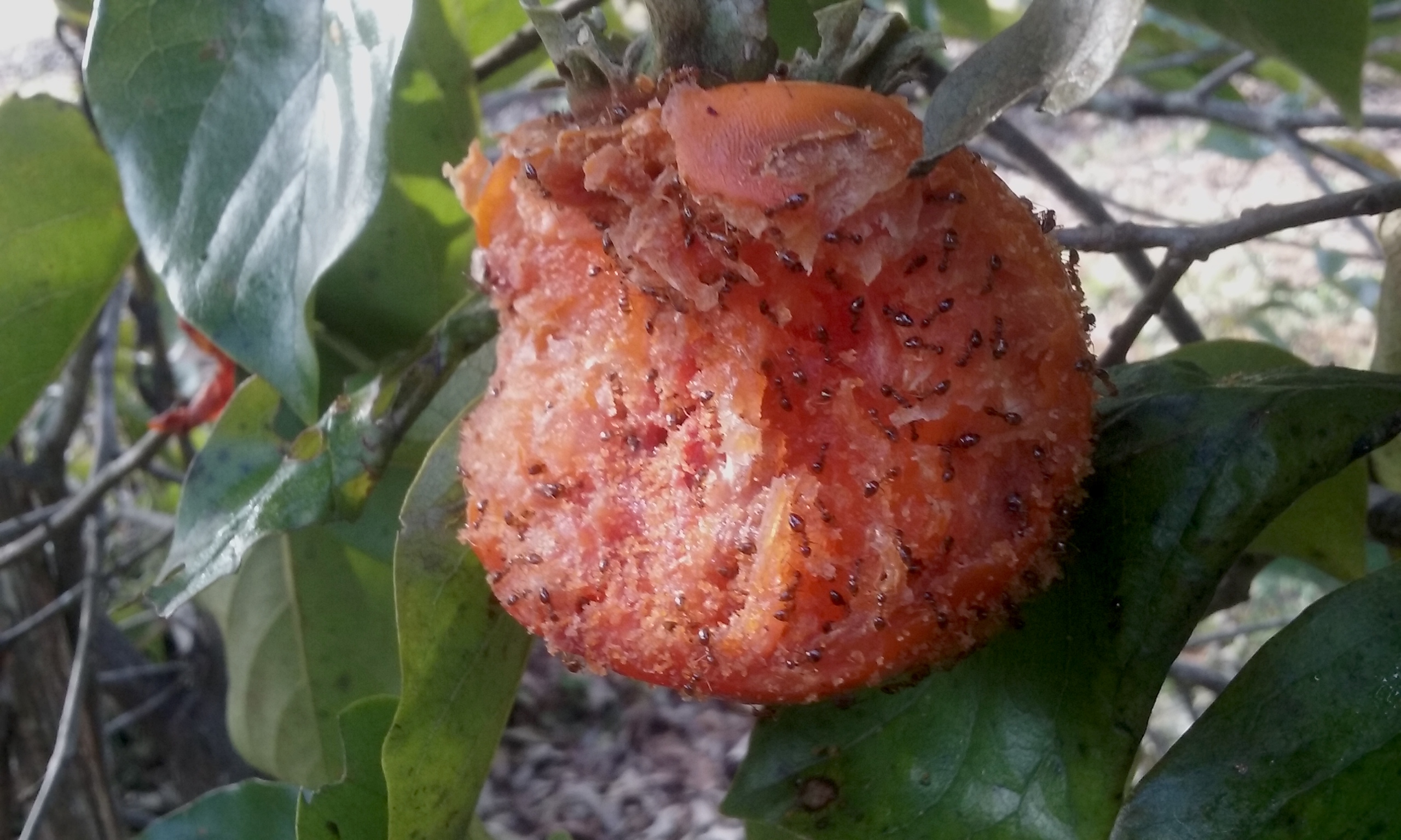 Подпил прямо ювелирный.. кто так высоко может добраться? Наверное насекомое, раз хурму не тронуло.