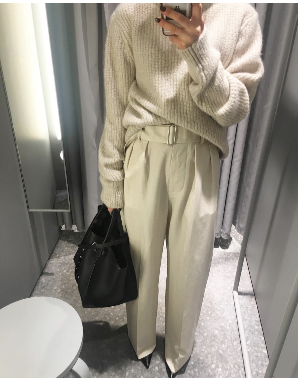 Мирабелка, опять всё понравилось, крой у топа интересный, цвет тоже, брюки и обувь тоже понравились. К топу люрексовому не надо ничего яркого, чтобы не выглядеть павлином, сумку можно чуть поярче может тёмно-бежевого цвета. Ну чуток ярче свитера по оттенку, или сумку интересную, клач там, так то молодец всё хорошо подобрала.