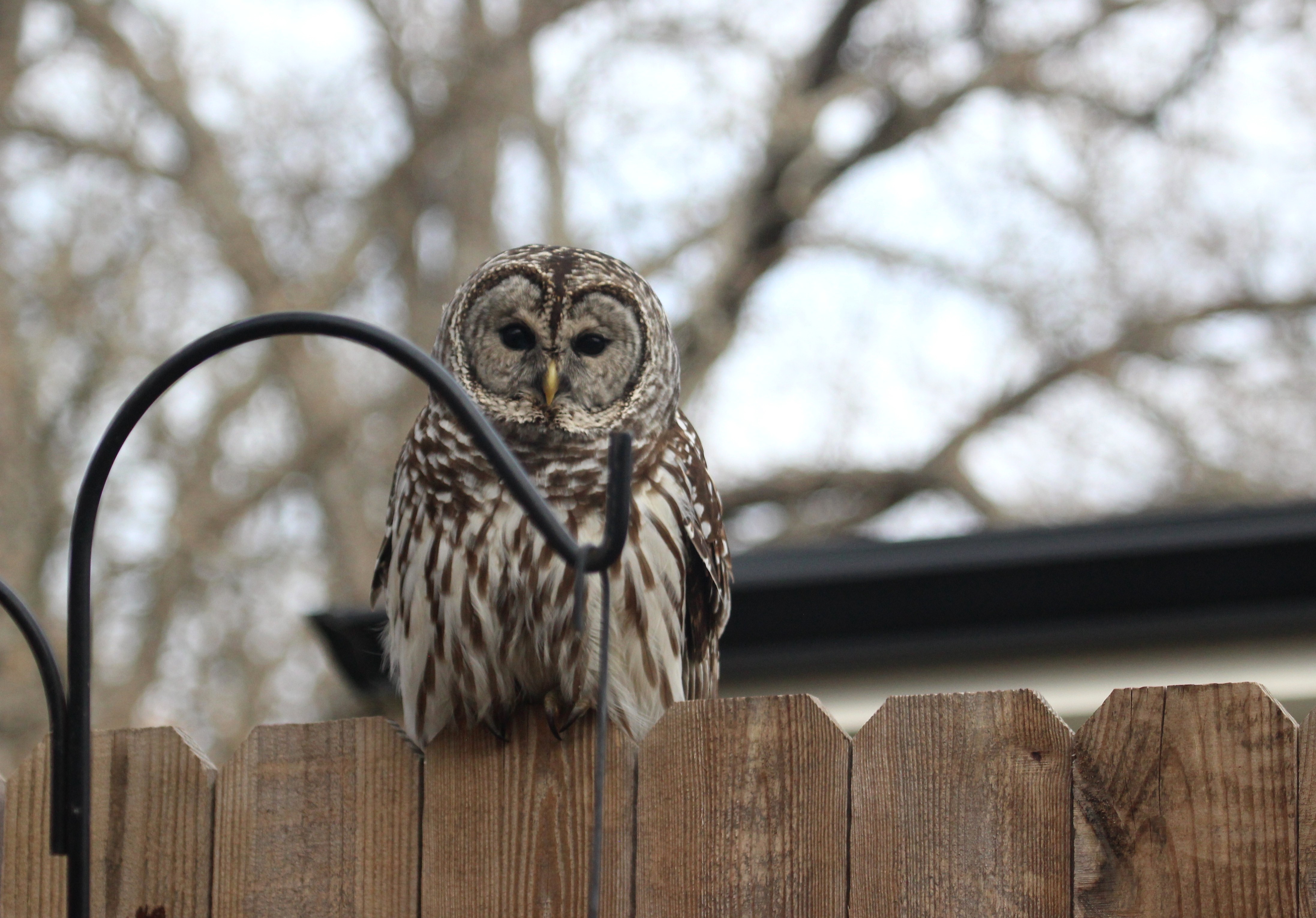 ой, деушки, сегодня у меня просто праздник души какой-то Вот кто прилетел прямо перед носом и сел на забор, с кормушки, конечно, все испарились за секунду, но сова никуда не спешила и дала мне затолкать карту в камеру и камеру с треноги сорвать , о блин я старалась только не думать, как я буду биться головой о стенку, если она улетит и не даст наглядеться и сфоткнуть! Добрая душа - посидела минут 5. Она огромная. Я знаю, что они есть тут, но ни разу не видела, тем более вот на своем заборе. Славате, только что окно поменяли и оно чистое и без занавески Она меня видела, но пофик На кормушке с арахисом сегодня было столпотворение, вот она и заглянула на огонек  Крючок вон перед носом, пардон, перед клювом. потом опять все прилетели.