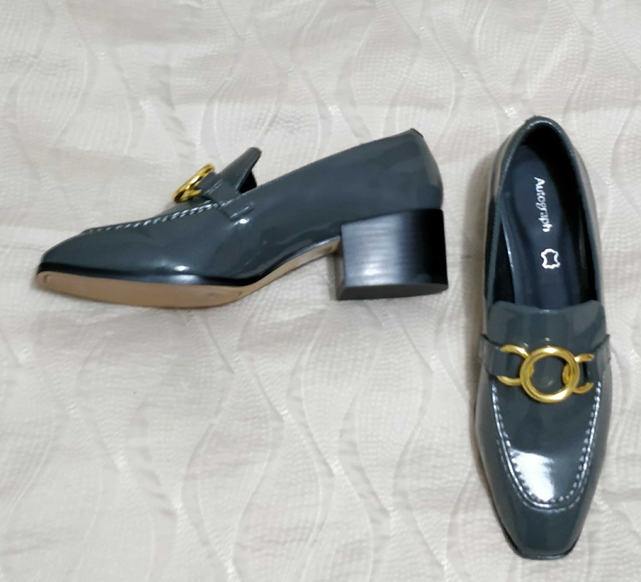 Ставлю свой трофей с финальной распродажи . Эти лоферы видела на их сайте на моделях и мне они запали в душу. Не знала, сколько они будут в распродаже стоить и вообще не рассчитывала что останутся. Но остались, причем одни и мой размер  . Очень удобные оказались. Кожа снаружи лаковая , внутри кожаная стелька и текстиль , "продуманные" как говорится. Меньше двадцатки. Единственное что смущало - жёлтая фурнитура, но её возможно убрать и даже заменить на другую