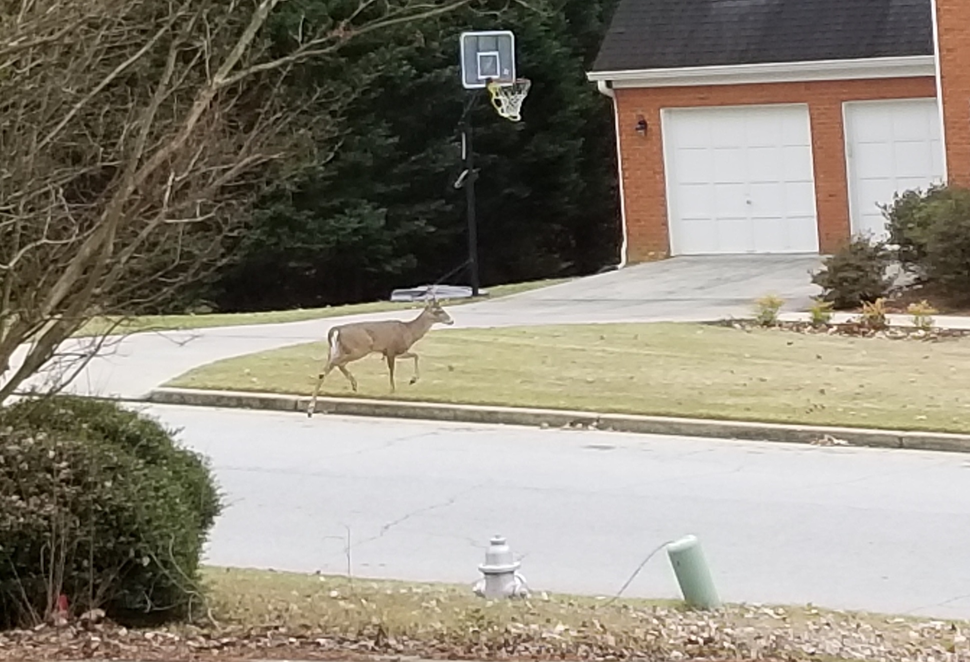 А оленей никакими костылями не отгонишь, их тут, кажется, больше, чем тараканов, вот как раз на днях вокруг дома: