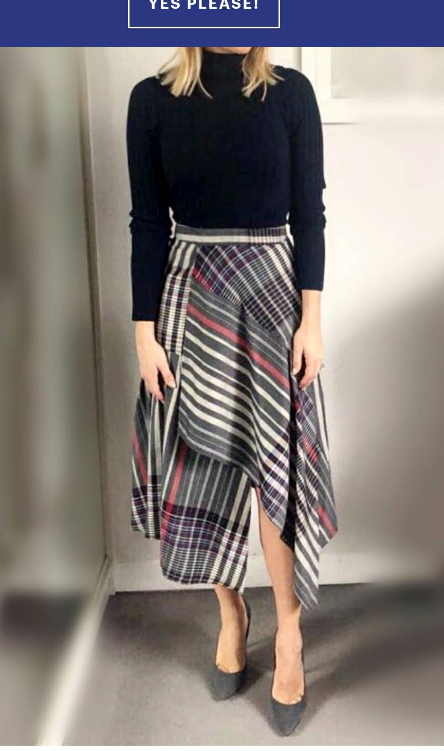 Пока искала свою голубую юбку онлайн, много чего в глаза бросилось  ,в том числе вот такая асимметричная. По- моему, интересное решение с расположением полосок и крой