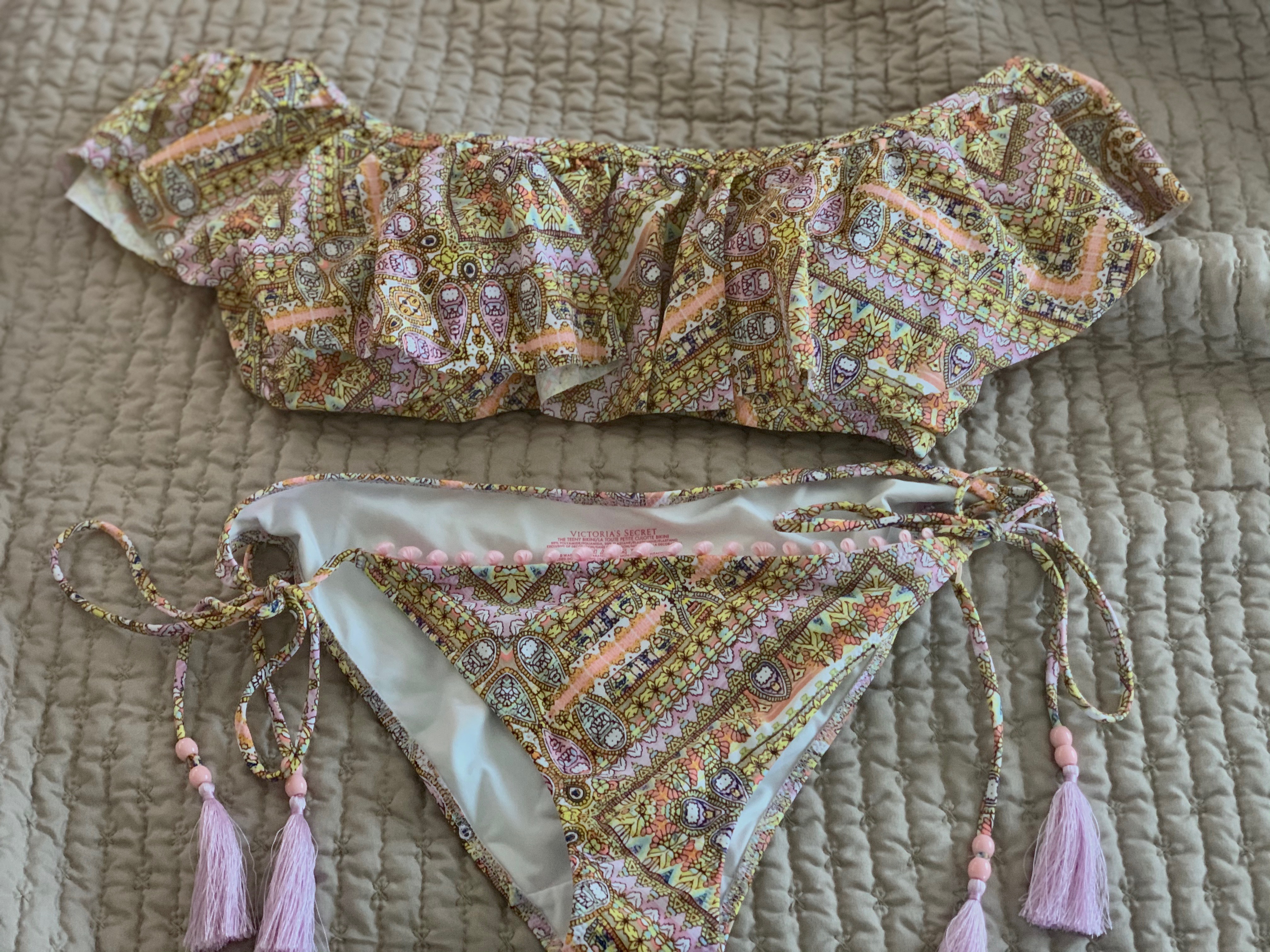 Можно не резинку, а шнурок похожий найти как на трусьях купальника