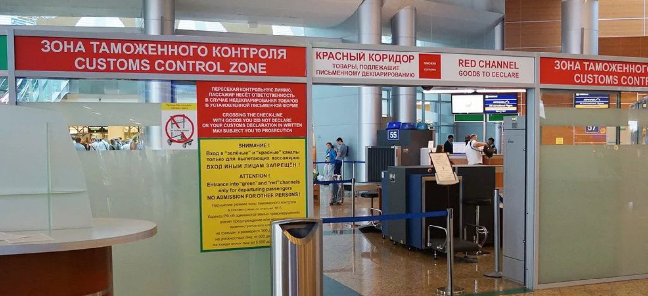 на выходе они прям в России- в публичную зону аэропорта. Паспортный контроль- чемоданы- зеленый и красный выход из аеропорта. Мы всегда летим в зеленый, поэтому не замечаем.