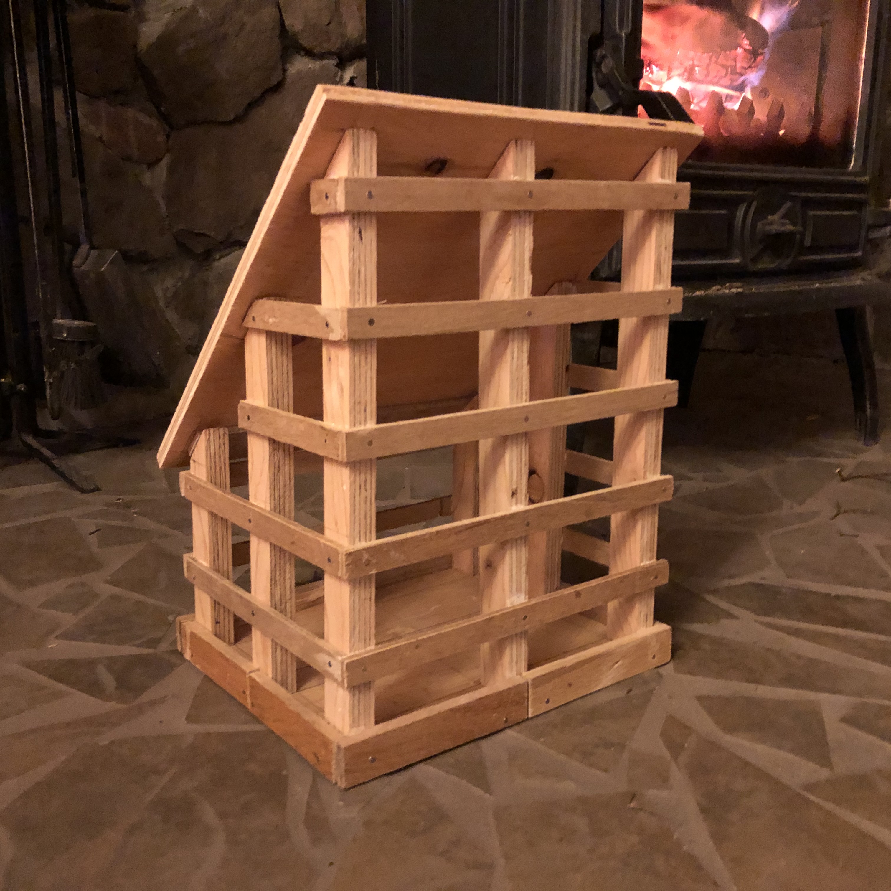 Подарок птичкам. Почти доделала по собственному проекту. Сохнет. Осталось покрыть крышу шинглами и обработать дерево защитой. Для маленьких птичек, против блюджеев и белок. Предыдущую кормушку эти наглые птицы, пытаясь добраться до корма, раскурачили, раскачали и сбросили на землю. Надеюсь, что эта выдержит их вандализм.