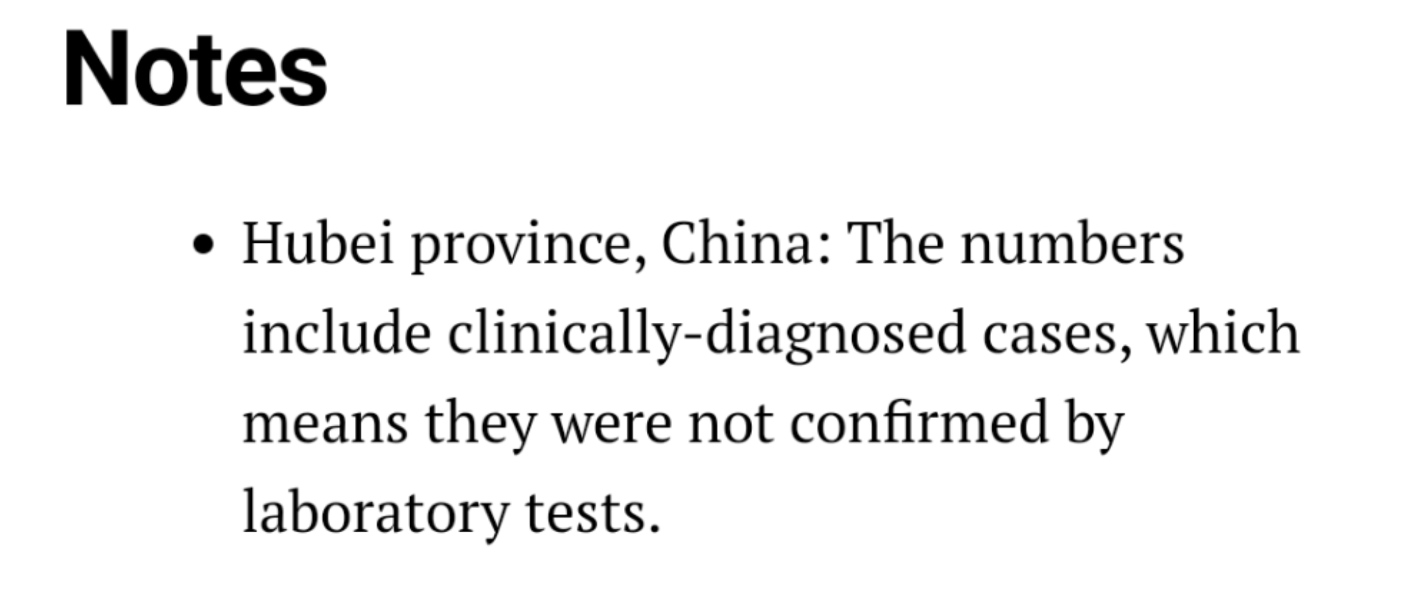 https://gisanddata.maps.arcgis.com/apps ... 7b48e9ecf6 There was also a huge increase in the number of cases, with 14,840 people diagnosed with the virus. Hubei has started using a broader definition to diagnose people - which accounts for most of the rise in cases. Until Wednesday's increases, the number of people diagnosed in Hubei - where the outbreak emerged - was stabilising. But the new cases and deaths in the province have pushed the national death toll above 1,350 - with almost 60,000 cases in total. The province - which accounts for more than 80% of overall Chinese infections - now includes "clinically diagnosed cases" in the number of confirmed cases. This means it includes those showing symptoms, and having a CT scan showing the infected lung - rather than relying only on the standard nucleic acid tests.Of the 242 new deaths in Wuhan, 135 are such "clinically diagnosed" cases. That means, even without the new definition, the number of deaths in Hubei on Wednesday was 107 - a new high for the province. The province's 14,840 new infections include 13,332 clinically diagnosed cases. Overall, the province now has 48,206 confirmed infections. По другому стали считать, поэтому так изменились цифры.