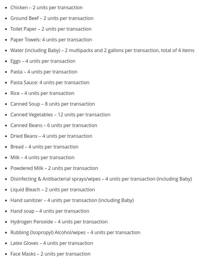 HEB опубликовал лимит продуктов и товаров в одни руки, а так же часы работы с 8 до 8
